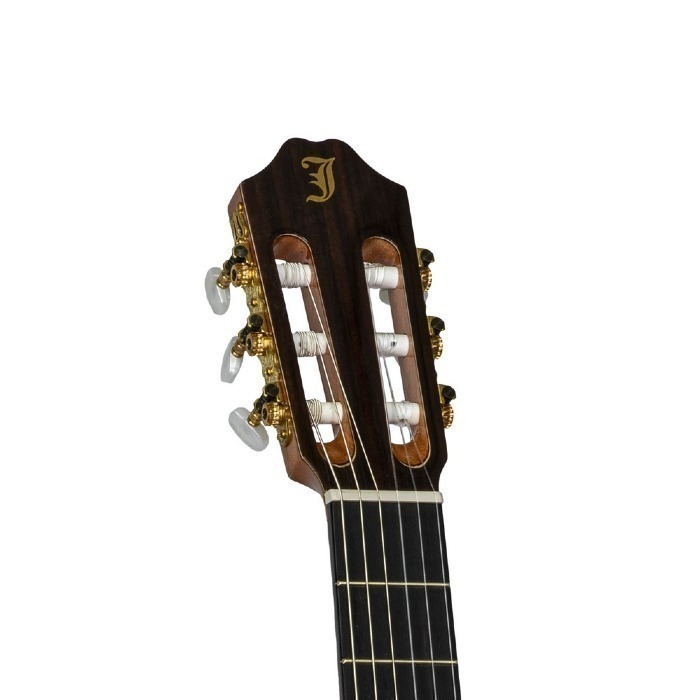 Juan Salvador 6A – pure akoestische perfectie. De 6A klassieke gitaar combineert traditioneel Spaans ontwerp met hoogwaardige materialen en richt zich volledig op de authentieke akoestische ervaring. Het massieve sparren bovenblad zorgt voor helderheid en resonantie, terwijl de zij- en achterkant van Indiaas palissander diepe bassen en rijke overtonen toevoegen.