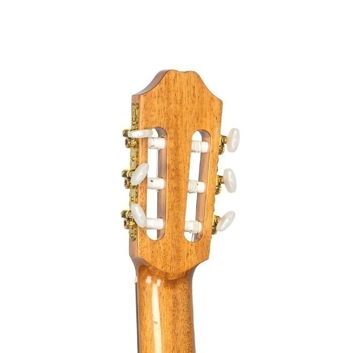 De Afrikaanse mahoniehals met ebbenhouten toets en brug biedt stabiliteit, duurzaamheid en een soepele speelervaring. Met een 650mm mensuur, 52mm topkam en duidelijke positieaanduidingen is de 6A ideaal voor klassieke speelstijlen, van studie tot gevorderd niveau. De dubbele binding versterkt de constructie en geeft de gitaar extra elegantie.
