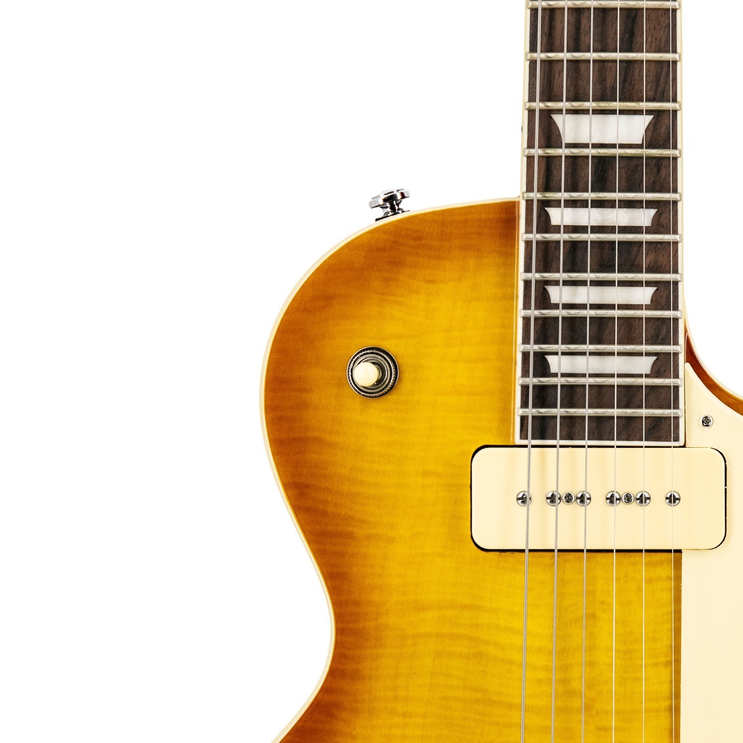 In tegenstelling tot versies met humbuckers, richt de Ascent+ H-150 P90 zich op rauwe karakter en aanraakgevoeligheid. De P-90 configuratie reageert direct op je speelintensiteit, en beweegt moeiteloos van sprankelende cleane tonen naar ruwe overdrive met organische bijt en definitie. De klassieke 2 volume, 2 toon, en 3-weg schakelaar lay-out biedt intuïtieve toonvorming voor veelzijdigheid op het podium en in de studio.