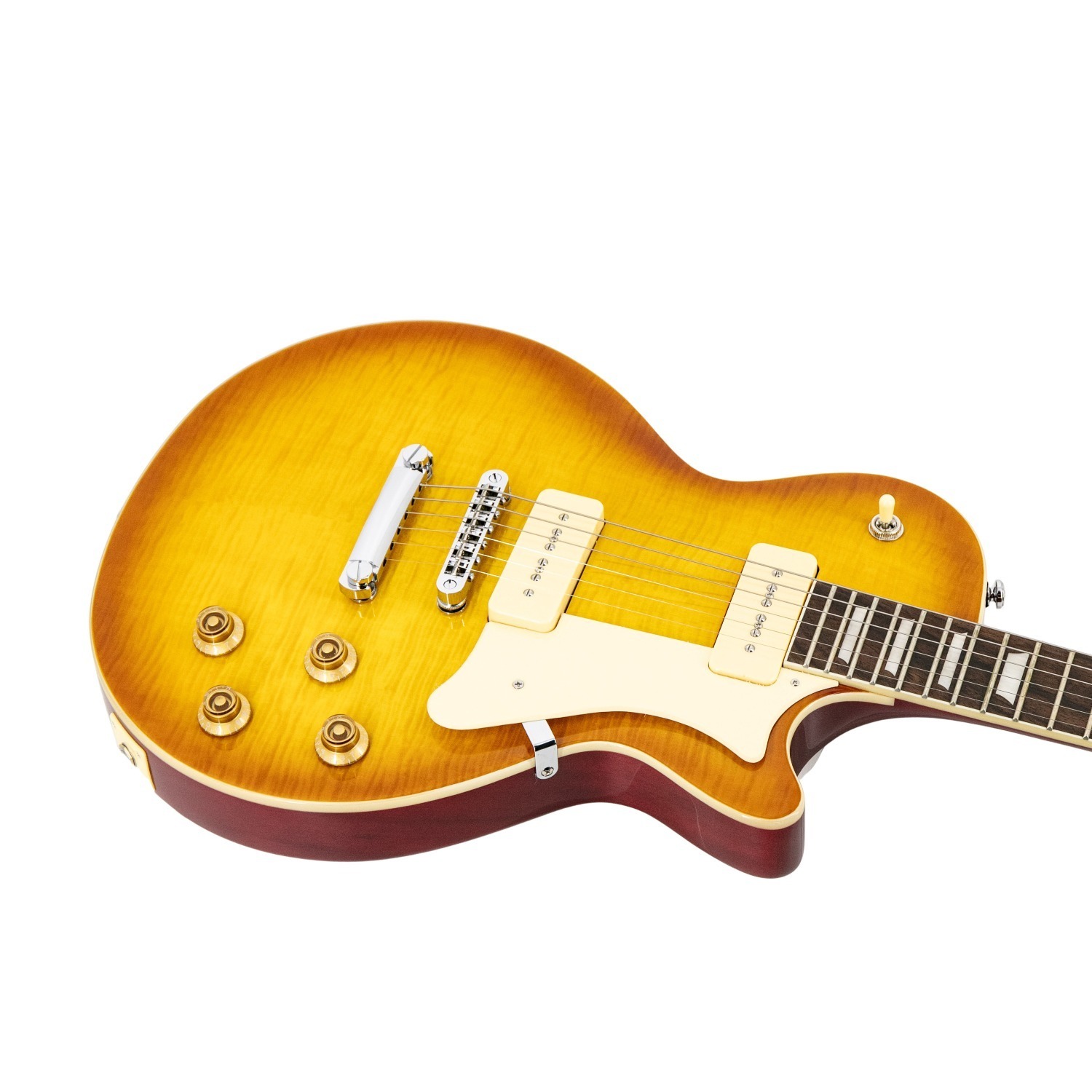 De Heritage Ascent+ H-150 P90 is waar gedurfde esthetiek samenkomt met dynamische, vintage-geïnspireerde klank. Met een opvallende gevlamde of gequiltte esdoorn top over een massief mahonie lichaam, levert het de perfecte balans van warmte, sustain, helderheid en visuele impact. Voorzien van krachtige P-90 pickups, biedt dit model een duidelijke aanval, rijke middenfrequentie grom, en expressieve dynamiek—ideaal voor blues, klassieke rock, indie, en alternatieve stijlen.