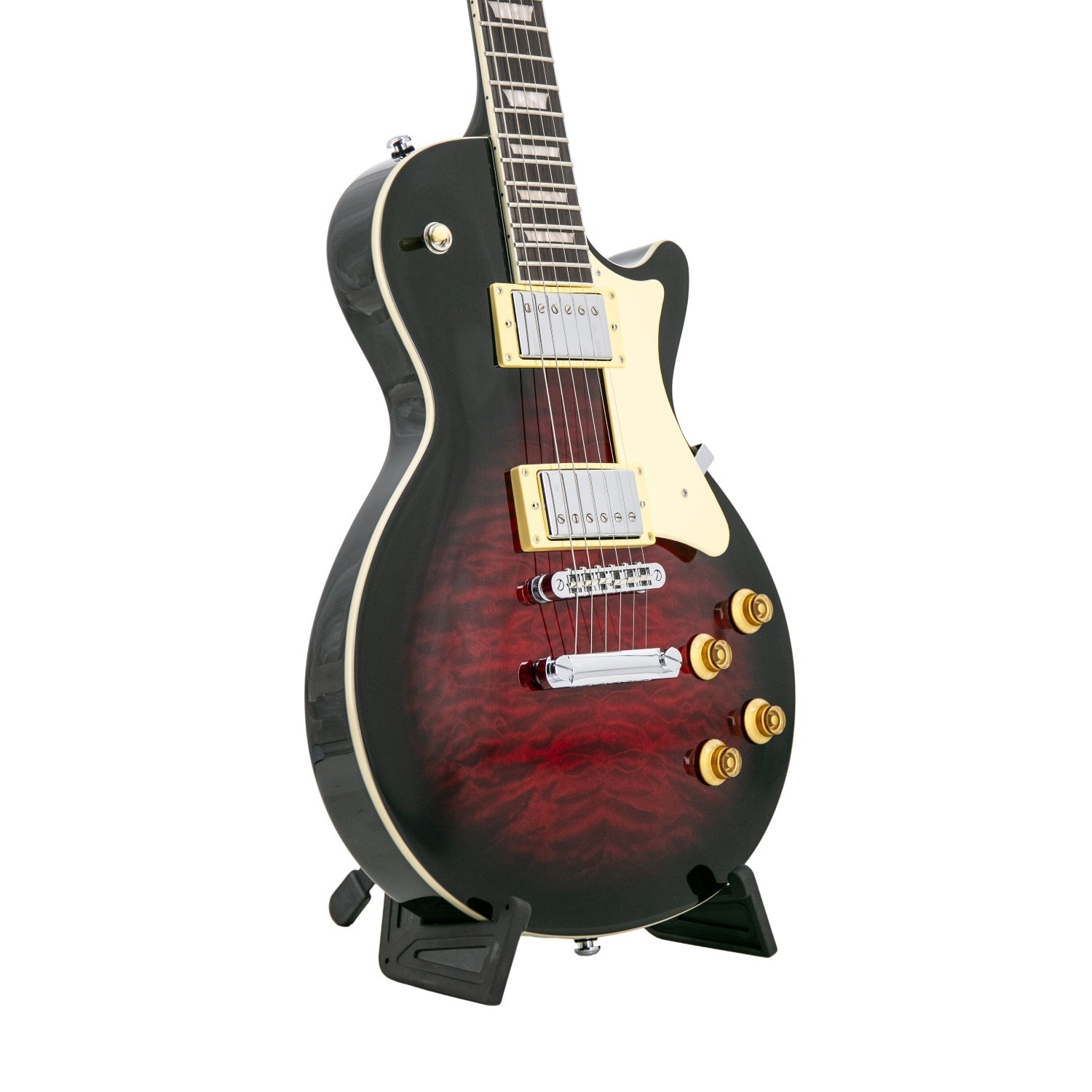 Afgewerkt in hoogglans met elegante binding, parelmoer trapezium inleg, chroom hardware en gouden belknoppen, mengt de Ascent+ H-150 Humbucker vintage-geïnspireerd ontwerp met moderne prestatiekenmerken—een expressieve, veelzijdige elektrische gitaar gebouwd voor spelers die toon, kracht en premium gevoel in één iconisch instrument willen.