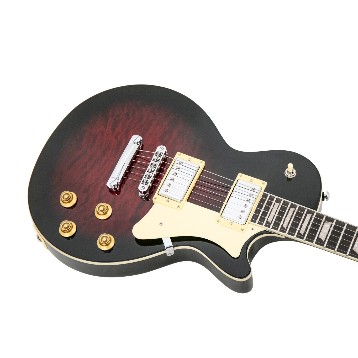 De Heritage Ascent+ H-150 Humbucker is waar verfijnde esthetiek samenkomt met compromisloze prestaties. Een opvallende gevlamde of gequiltte esdoorn top over een massief mahonie lichaam levert de ideale balans van warmte, sustain, helderheid en visuele impact. Ontworpen voor spelers die tonale flexibiliteit eisen, combineert het klassieke constructie met moderne elektronica voor podiumklare veelzijdigheid.