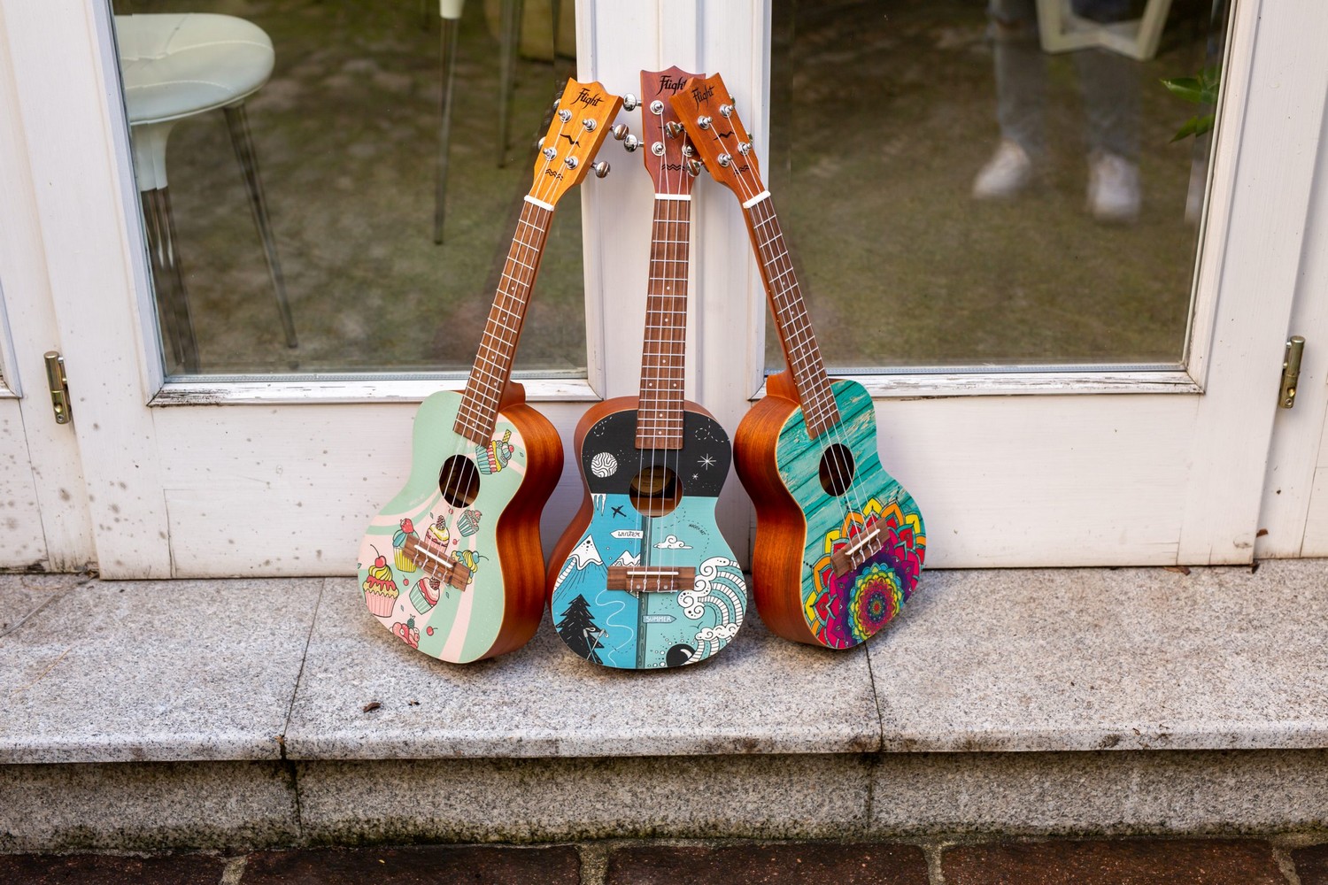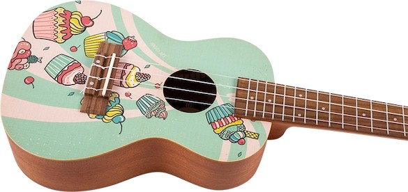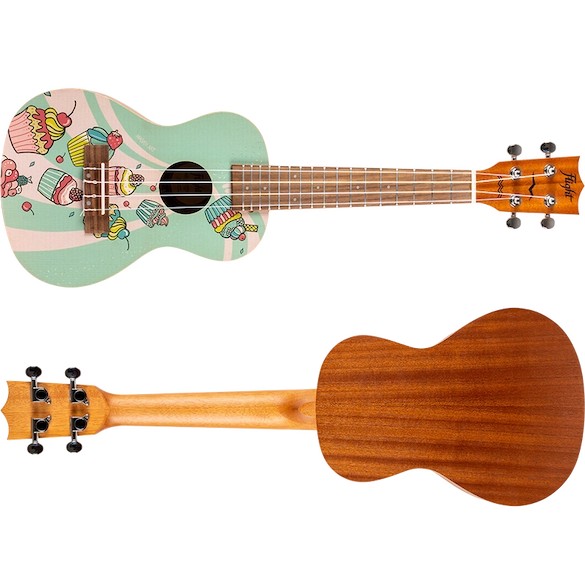 The Flight AUC-33 Cupcake Ukulele features a tasty cupcake design by the talented Argentinian artist, Macuco.art.  Cupcakes are trendy and a favorite treat on the metropolitan scene.  They are shareable, are the perfect size for a dessert, and can be used for every occasion.  Join in on the fun with the AUC-33 Cupcake Ukulele, which is the perfect instrument for any celebration–or the perfect gift for any celebration!At Flight, we love to use colors and attractive designs, so we decided to explore adding incredible designs to our ukuleles. These ukuleles combine the worlds of fashion and music. We haven’t sacrificed quality for the looks or taken any shortcuts in creating these instruments.  The result is astonishing: gorgeous ukuleles with a warm and strong sound that won’t break the bank.  And like all Flight ukuleles, every Art Series ukulele includes a fantastic Flight gig bag!
