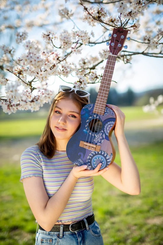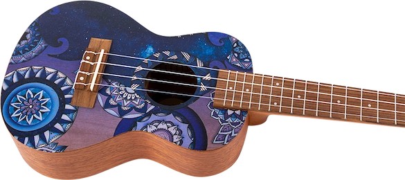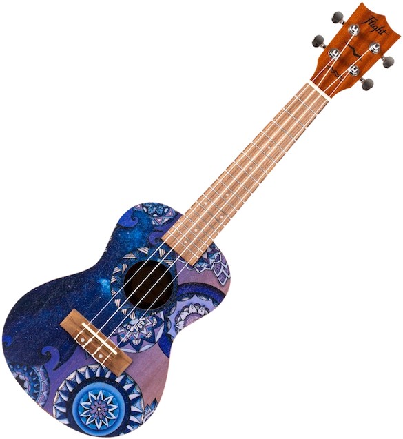 The Flight AUC-33 Stardust Concert Ukulele is a ukulele for all the dreamers out there. Captured elegantly by the fantastic artist Reham Fareed, the Stardust Concert Ukulele captures to the beauty we see when gazing at the night sky.  Let’s explore the night together and celebrate the night sky with song!At Flight, we love to use colors and attractive designs, so we decided to explore adding incredible designs to our ukuleles. These ukuleles combine the worlds of fashion and music. We haven’t sacrificed quality for the looks or taken any shortcuts in creating these instruments.  The result is astonishing: gorgeous ukuleles with a warm and strong sound that won’t break the bank.  And like all Flight ukuleles, every Art Series ukulele includes a fantastic Flight gig bag!