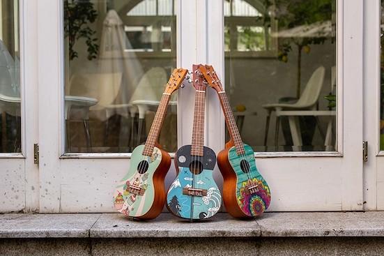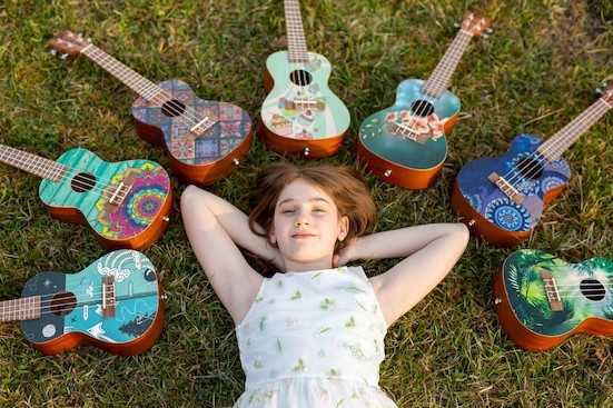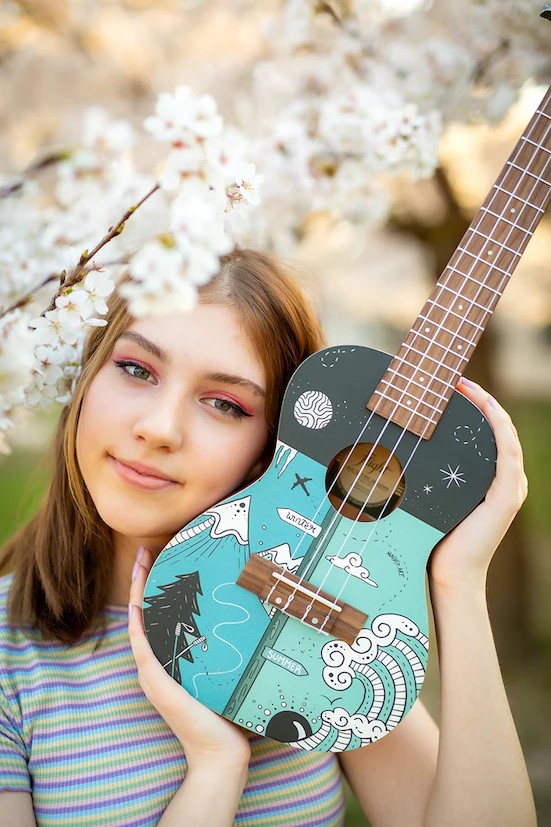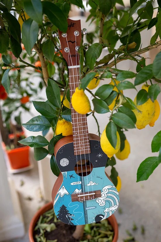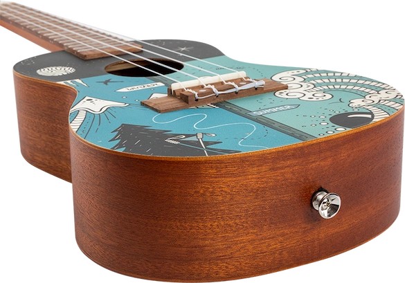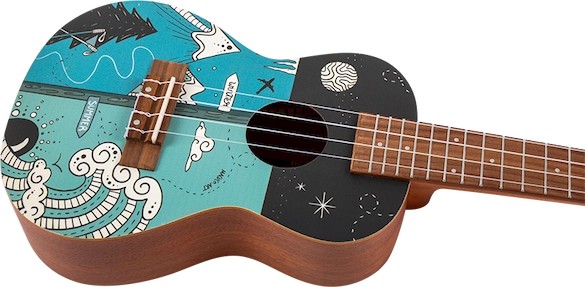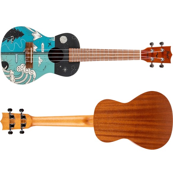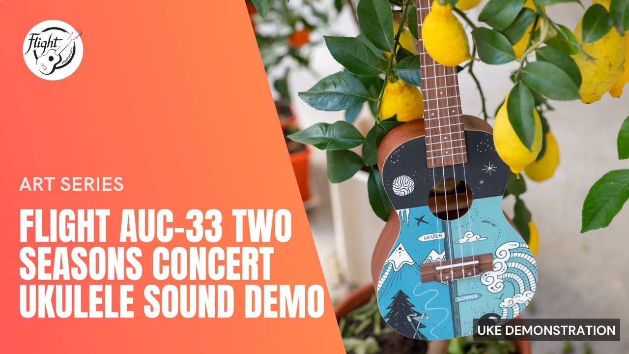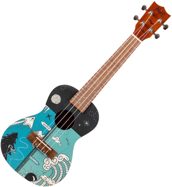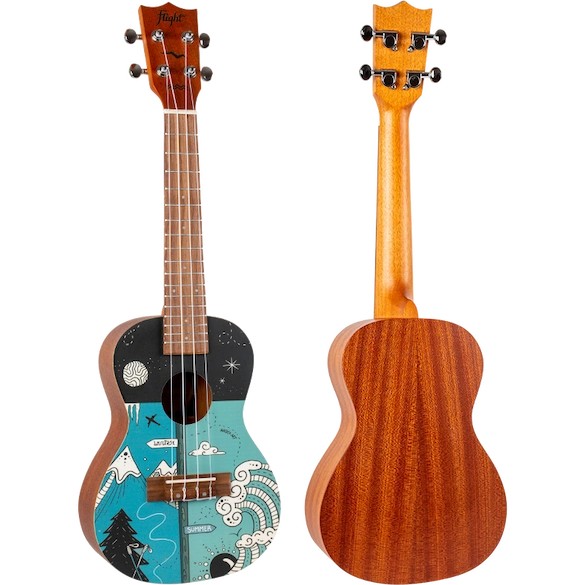The Flight AUC-33 Two Season Concert Ukulele whimsically celebrates two seasons from Slovenia (the home of Flight Ukulele) with a wonderful design by the talented Argentinian artist, Macuco.art!   Summer is a time for travel, camping, swimming, hiking, and warm outdoor fun.  We appreciate the warm sun and good times that summer brings.  Winter offers thrilling activities such as skiing, sledding, ice skating, and snowmobiling.  While sometimes it is bone-chilling cold, the winter gives us time to enjoy a warm beverage, keep warm with a blanket, and enjoy the company of others while the weather is frightful outside.  AUC-33 Two Season Concert Ukulele is the perfect instrument for any season!At Flight, we love to use colors and attractive designs, so we decided to explore adding incredible designs to our ukuleles. These ukuleles combine the worlds of fashion and music. We haven’t sacrificed quality for the looks or taken any shortcuts in creating these instruments.  The result is astonishing: gorgeous ukuleles with a warm and strong sound that won’t break the bank.  And like all Flight ukuleles, every Art Series ukulele includes a fantastic Flight gig bag!