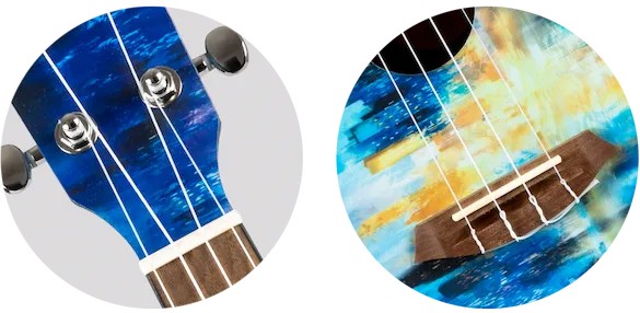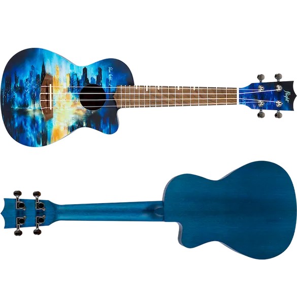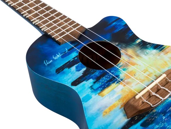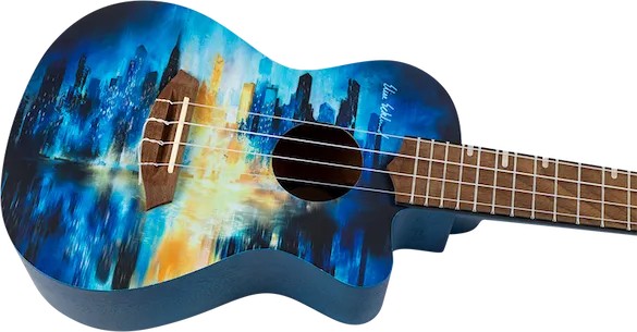 The Elise Ecklund City Ukulele is an amazing instrument and a piece of art that reflects the beauty and fun of city adventures.Elise says the design of the City Ukulele was inspired by beautiful cities she has visited, as well as the cities that remain on her bucket list.   Every city has its own vibe, featuring quaint coffee houses, amazing rooftop views, and stunning architecture. Elise wanted to create a ukulele that would reflect this concept of uniqueness through a design with an abstract blue and gold city skyline, leaving room for each person to interpret the artwork on the ukulele.  For Elise, the design reminds her of her past travels, songs she has sung, and her future goals. Imagine the experiences you will have with this ukulele and the meanings it will have for you!The Elise Ecklund City Ukulele offers great looks, sound, playability, durability, and value.  Looking for the perfect uke to take with you on every city adventure? If so, this is it!