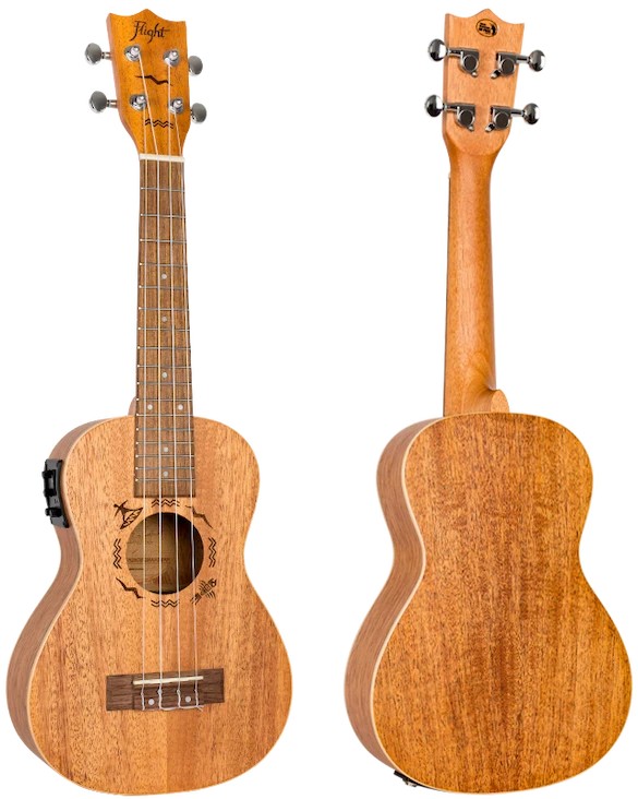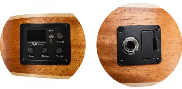 The Flight DUC323 is a concert-sized ukulele made from laminate mahogany, giving it a warm and resonant sound. Do not let the “sober” look of mahogany fool you, though—mahogany ukuleles, especially those fitted with an arched back like the DUC323, know how to growl! And since this uke is fitted with a Flight pickup, it can growl even louder! And since this uke is fitted with a Flight pickup, it can growl even louder!