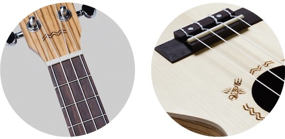 Looks like a zebra, roars like a lion! Like its little brother, the DUC325 is a lovely concert ukulele with a tone that is both punchy and warm, thanks to the unique combination of a laminate spruce top and laminate zebrawood body. With its arched back, you will be amazed at the massive sound this ukulele will offer you for years to come.