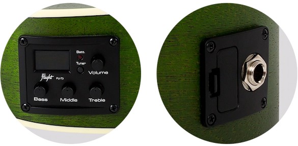 Green is the color of our planet’s lungs. Breathe musical life into your atmosphere with the Flight DUC380 CEQ Topaz Concert Ukulele. Green will also be the color of envy when others see this amazing instrument. As intimate as a quiet forest or as open as the Savannah, this uke is an instrument you won’t want far from your side.