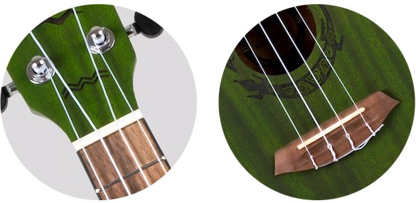• Premium Features: Arched back, Die-Cast Geared Tuners, Laser Engraved Rosette, Aquila Super Nylgut Strings, Side Dots.