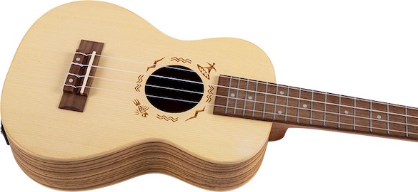 Looks like a zebra, roars like a lion! Like its little brother, the DUC525 is a lovely concert ukulele with a tone that is both punchy and warm, thanks to the unique combination of a spruce solid top and laminate zebrawood body. Featuring an arched back and a built-in pickup, you will be amazed at the massive sound this ukulele will give you, for years to come.