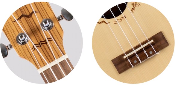 • Premium Features: Arched back, Chrome Die-Cast Geared Tuners, Laser Engraved Rosette, Aquila Super Nylgut Strings, Side Dots.