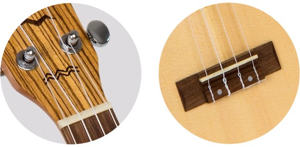 • Premium Features: Arched back, Chrome Die-Cast Geared Tuners, Laser Engraved Rosette, Aquila Super Nylgut Strings, Side Dots.