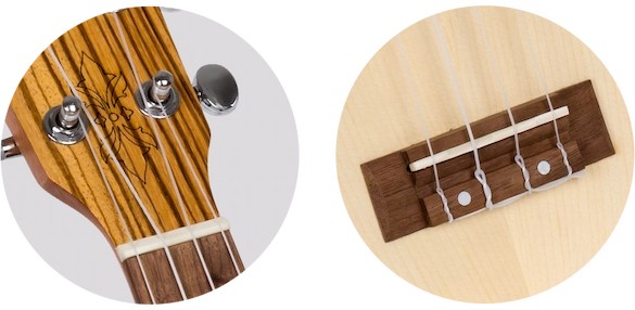 • Premium Features: Arched back, Chrome Die-Cast Geared Tuners, Laser Engraved Rosette, Aquila Super Nylgut Strings, Side Dots.