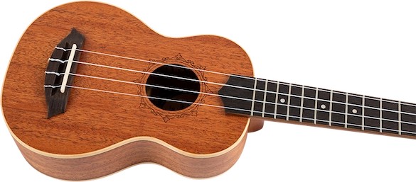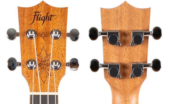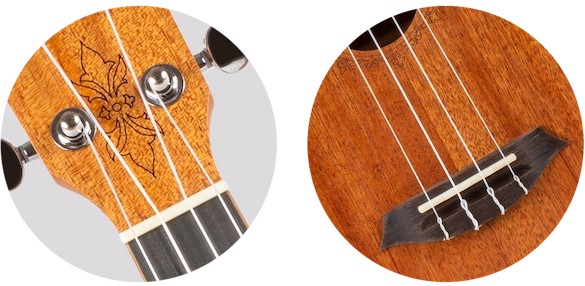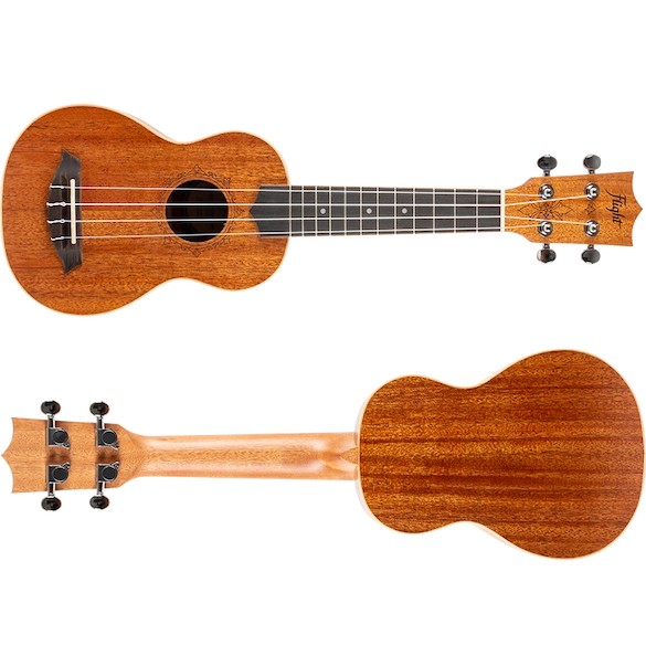 The Flight DUS321 is a soprano-sized ukulele. It has a laminate mahogany top, paired with laminate mahogany back and sides, giving it a very warm and resonating sound. Do not let the “sober” look of mahogany fool you, though—mahogany ukuleles, especially those fitted with an arched back like the DUS321, know how to growl!