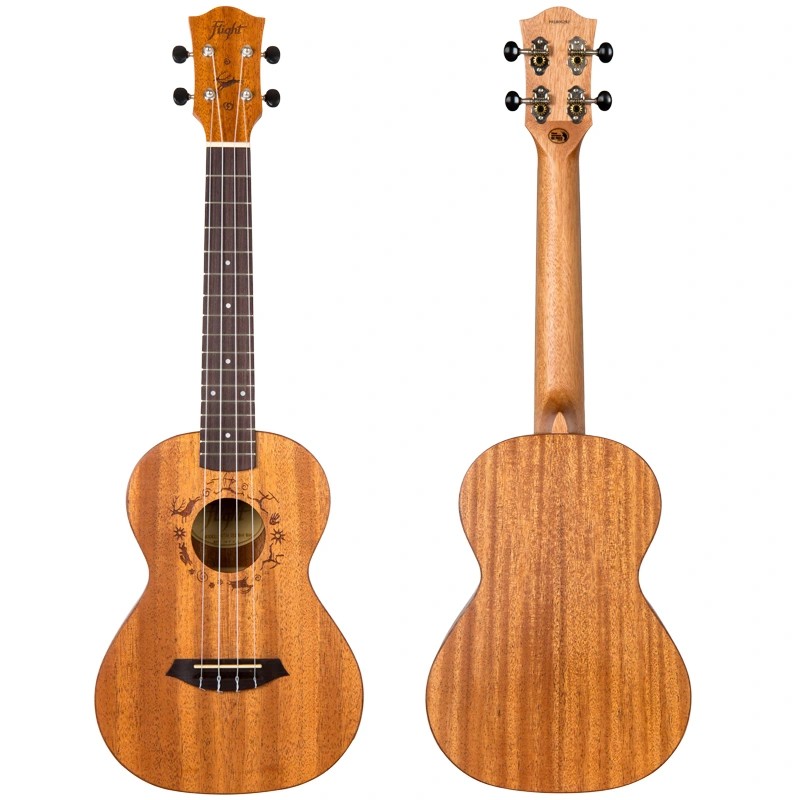 Larger in scale length and body, the tenor ukulele possesses a real versatility when played. Sporting up to 19 frets, a tenor can employ an increased range of play that some guitarists would otherwise miss when migrating to the Ukulele. The tenor fretboard is a real playground for chord inversions and other tricks. Indeed, tenors with their increased volume and sustain are often the choice of Hawaiian soloists and other notable players.Thanks to its warm sound, low maintenance, and flawless intonation, the DUT34 is the perfect instrument for a beginner and seasoned players alike. We believe that when you buy your first uke, it should serve you well for the first few years of learning at least and beyond. In 2019 we have completely redesigned this model, changing the headstock and bridge shape, as well identifying choice woods to build this attractive and fantastic sounding ukulele.