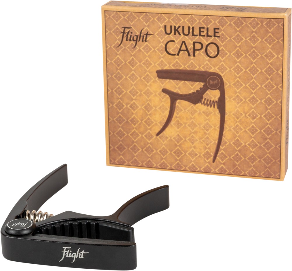 Flight offers a growing selection of ukulele accessories, such as this black capo. Sized specifically for the ukulele, the Flight FC-BK Capo is made from aluminum.  The spring loaded mechanism of the capo allows you to quickly change the key of your instrument, allowing your music to take Flight in whatever key you choose.