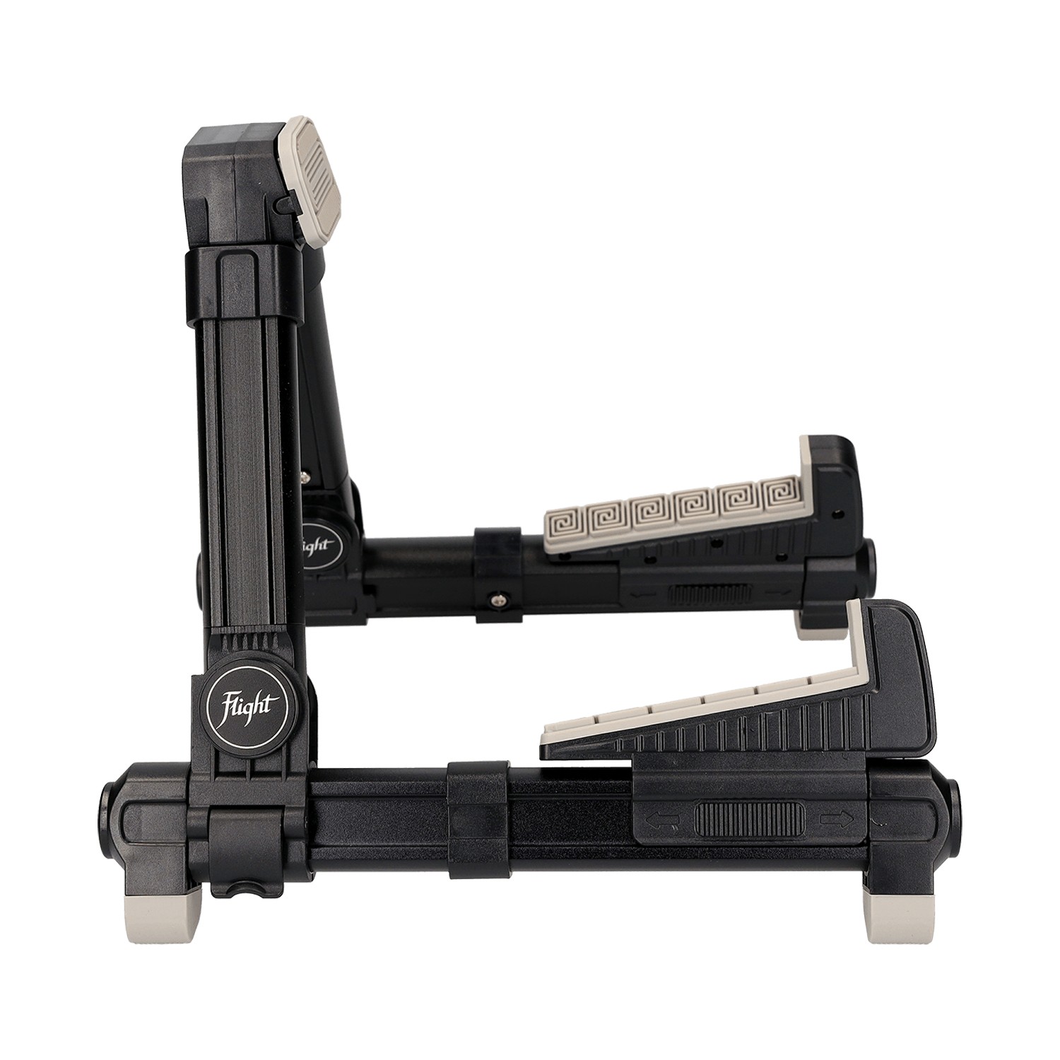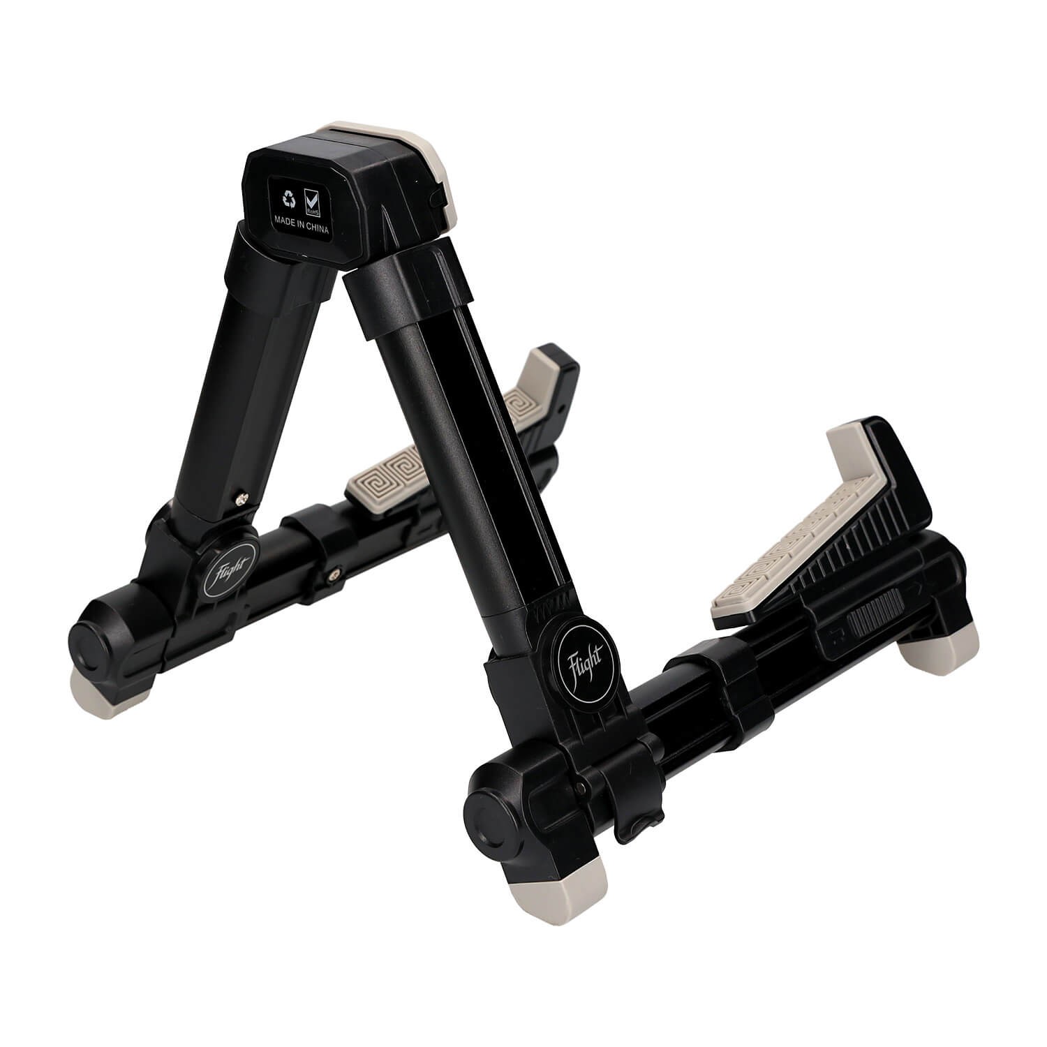 Flight offers a growing selection of affordable ukulele accessories, such as this black ukulele stand.  Made of lightweight aluminum, and able to collapse for travel, the stand is the perfect accessory to bring along so that you can store your ukulele safely when you take a break from playing.  The rubber feet on the stand will keep it from moving, and the rubber pads on the stand will keep your ukulele in its place until you are ready to play again.