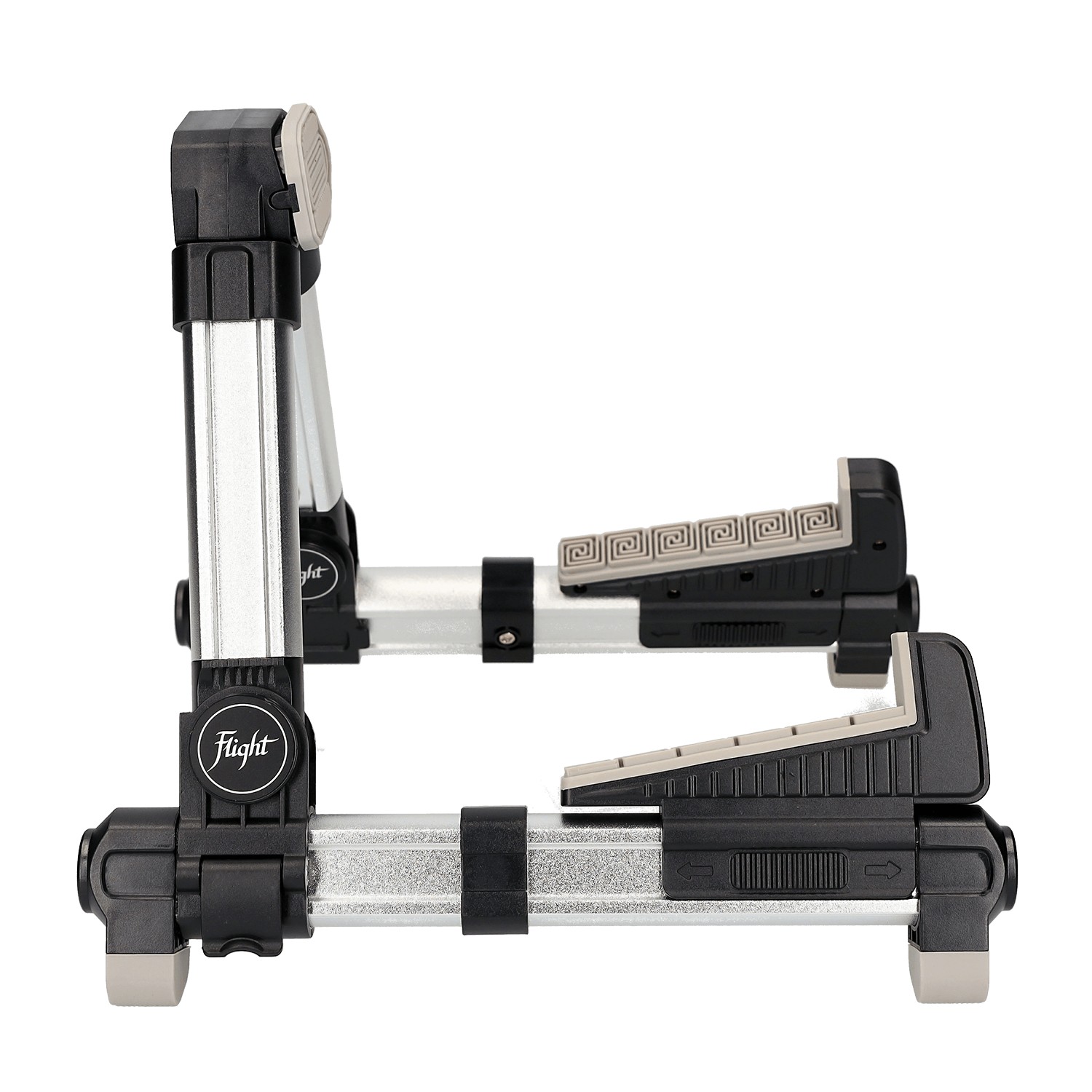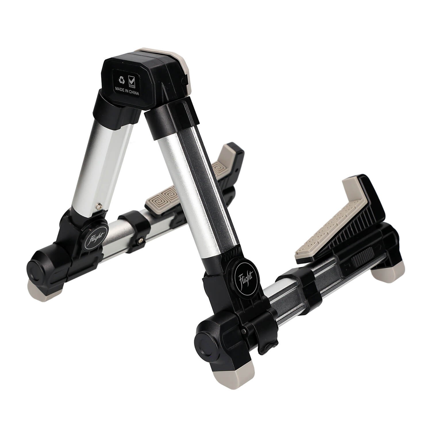 Flight offers a growing selection of affordable ukulele accessories, such as this silver ukulele stand.  Made of lightweight aluminum, and able to collapse for travel, the stand is the perfect accessory to bring along so that you can store your ukulele safely when you take a break from playing.  The rubber feet on the stand will keep it from moving, and the rubber pads on the stand will keep your ukulele in its place until you are ready to play again.