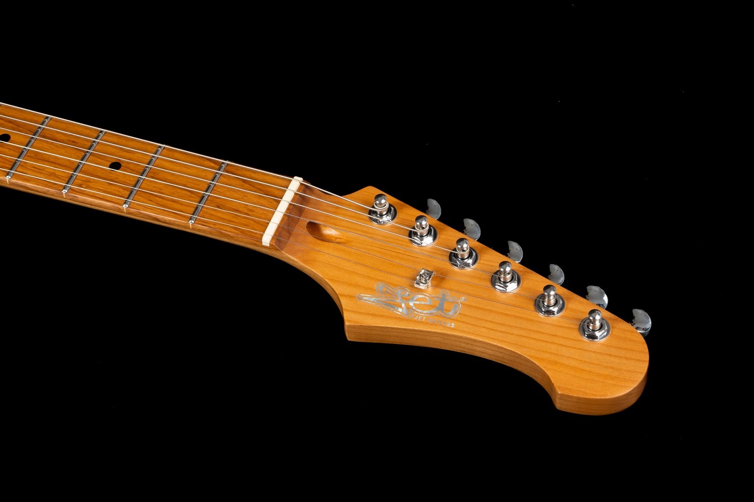 A tremolo bridge enhances expressive capability, supporting smooth vibrato action while maintaining reliable tuning performance. The combination of upgraded hardware and balanced electronics ensures readiness for both rhythm and lead playing.