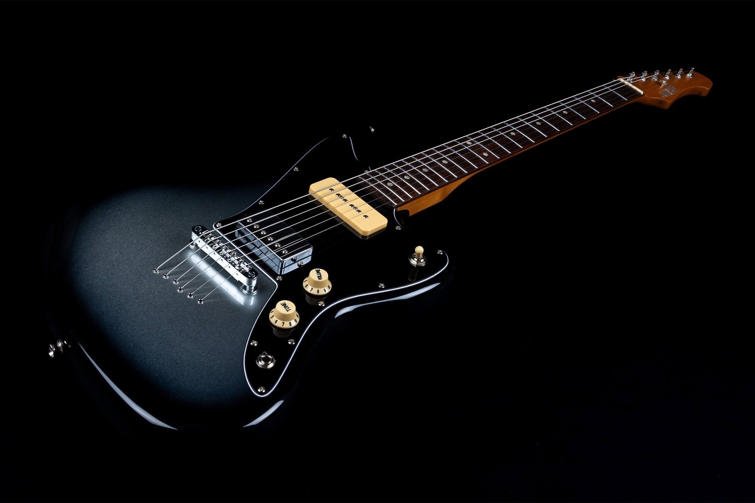 Deze versie is uitgerust met een H-P90 pickupconfiguratie, die een brug humbucker koppelt aan een P90-stijl halspickup. Gecontroleerd via een 3-weg selectieschakelaar en eenvoudige master volume- en toonregelaars, bieden de elektronica een breed tonaal palet — van gefocuste humbucker drive tot middengebied-rijke P90 articulatie.