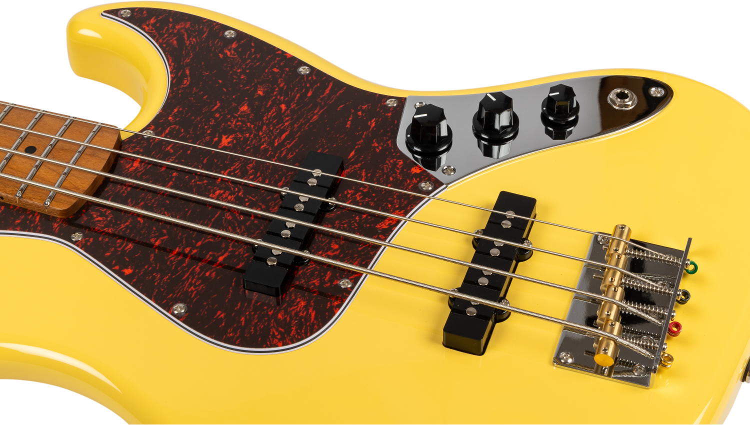 De JJB-300 heeft twee J-stijl single-coil pickups, die worden bediend via onafhankelijke volumeregelingen en een master toonregeling. Deze configuratie biedt toegang tot brug-, hals- en gemengde pickup-instellingen, en levert de kenmerkende articulatie, punch en middenbereik aanwezigheid die geassocieerd worden met JB-stijl bassen.