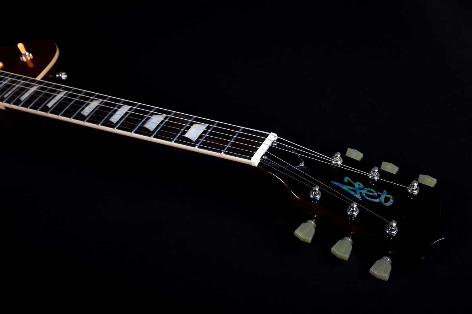 De HH-configuratie bestaat uit dubbele bedekte humbuckers die worden bediend via een 3-weg selectieschakelaar, met onafhankelijke volumeregeling en toonregeling. Een vaste brug met stop tailpiece zorgt voor een solide intonatie, directe snaarrespons en stemstabiliteit.