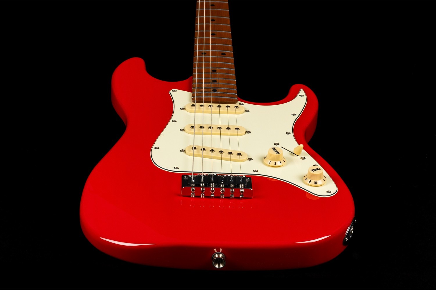This model is equipped with an SSS pickup configuration, providing three single-coil pickups controlled via a 5-way selector switch. The layout delivers a broad range of classic electric tones — from clear and chiming cleans to articulate lead voicings — with master volume and tone controls for intuitive adjustment.