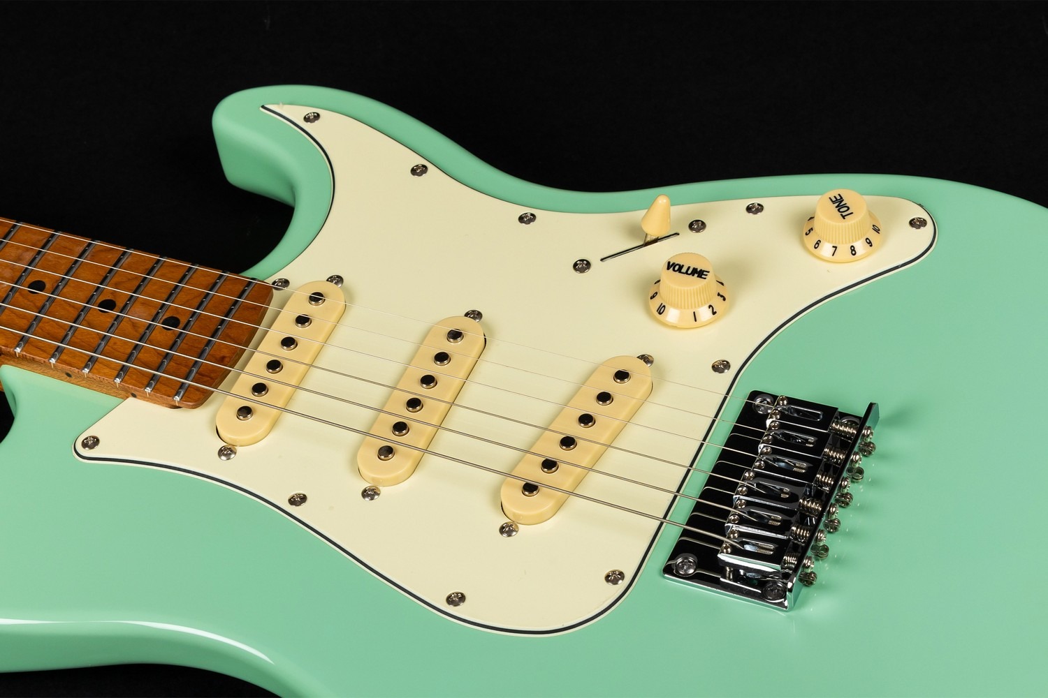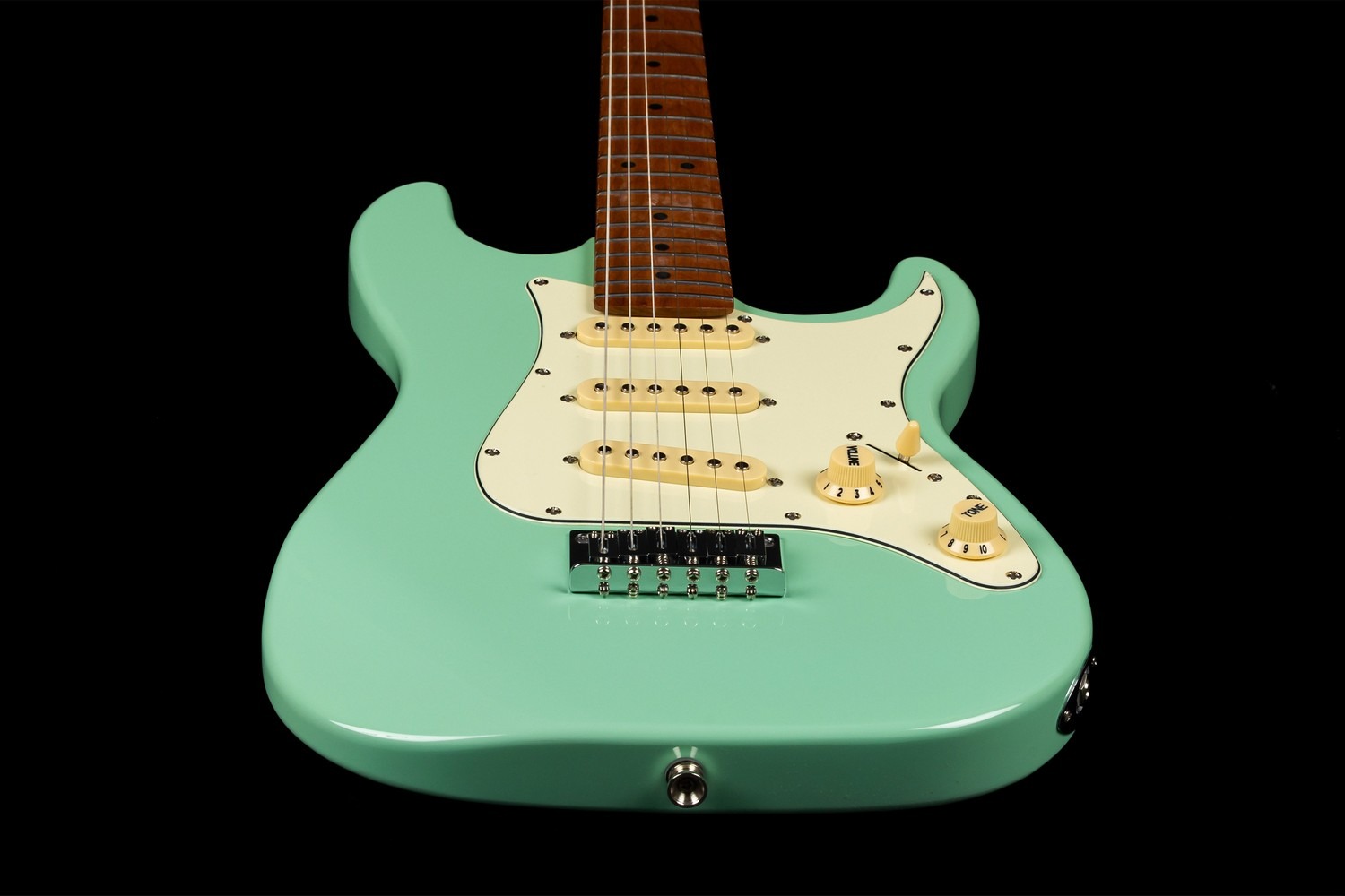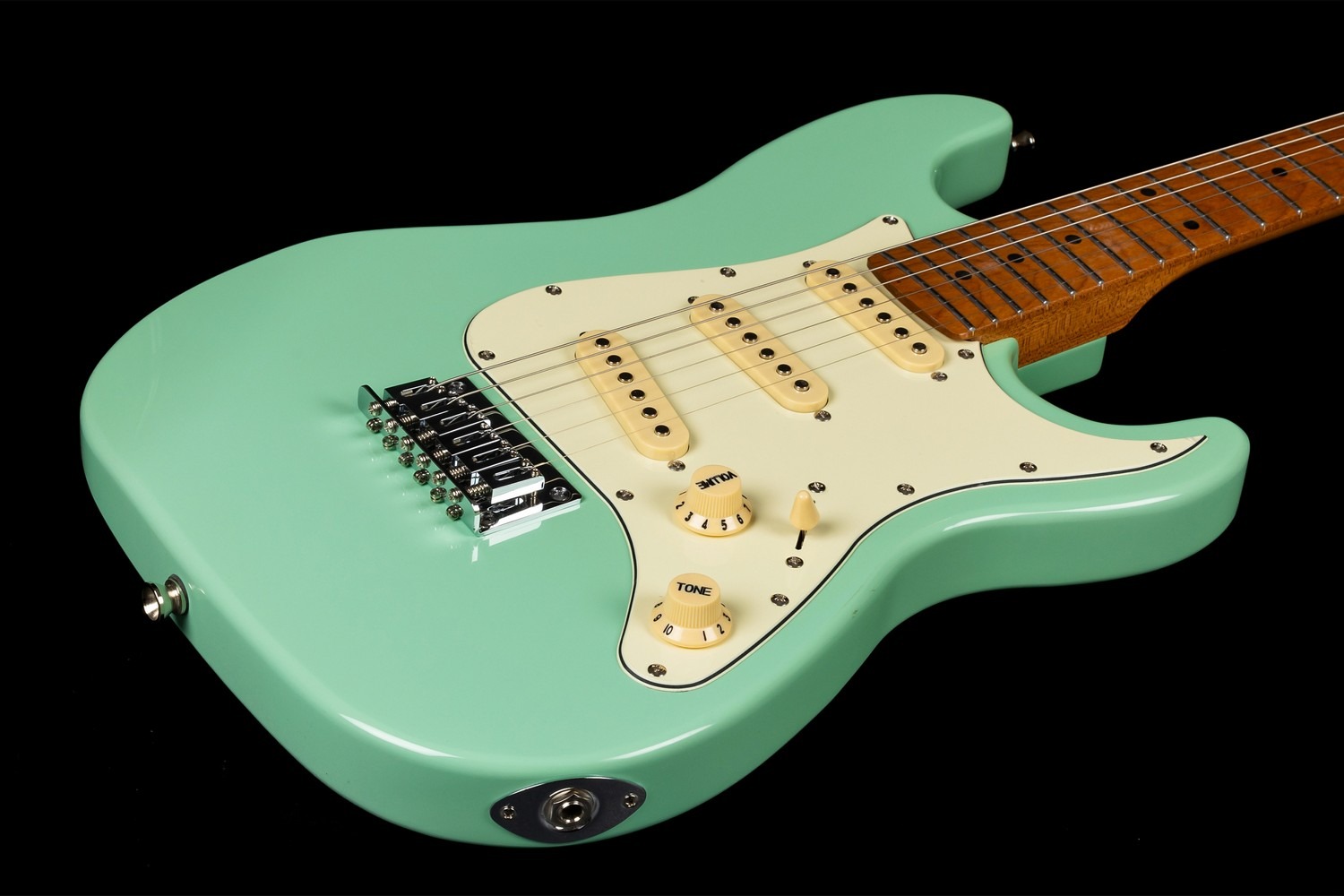 This model is equipped with an SSS pickup configuration, providing three single-coil pickups controlled via a 5-way selector switch. The layout delivers a broad range of classic electric tones — from clear and chiming cleans to articulate lead voicings — with master volume and tone controls for intuitive adjustment.