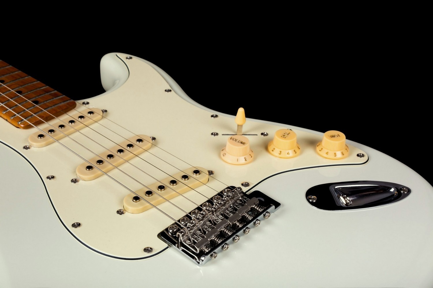 This model is equipped with an SSS pickup configuration, delivering three single-coil pickups controlled via a 5-way selector switch. This layout provides access to the full range of traditional single-coil tones, including clear neck sounds, balanced middle positions, and articulate bridge response. Master volume and tone controls allow straightforward and precise tonal adjustment.