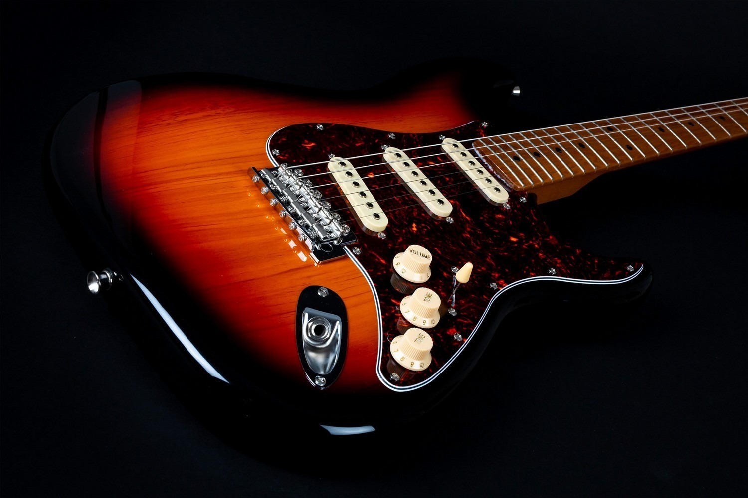 Dit model is uitgerust met een SSS pickupconfiguratie, die drie single-coil pickups levert die worden bediend via een 5-weg selectieschakelaar. Deze indeling biedt toegang tot het volledige scala van traditionele single-coil tonen, inclusief heldere halsgeluiden, gebalanceerde middenposities en duidelijke brugrespons. Master volume- en toonregelaars maken eenvoudige en nauwkeurige toonaanpassing mogelijk.