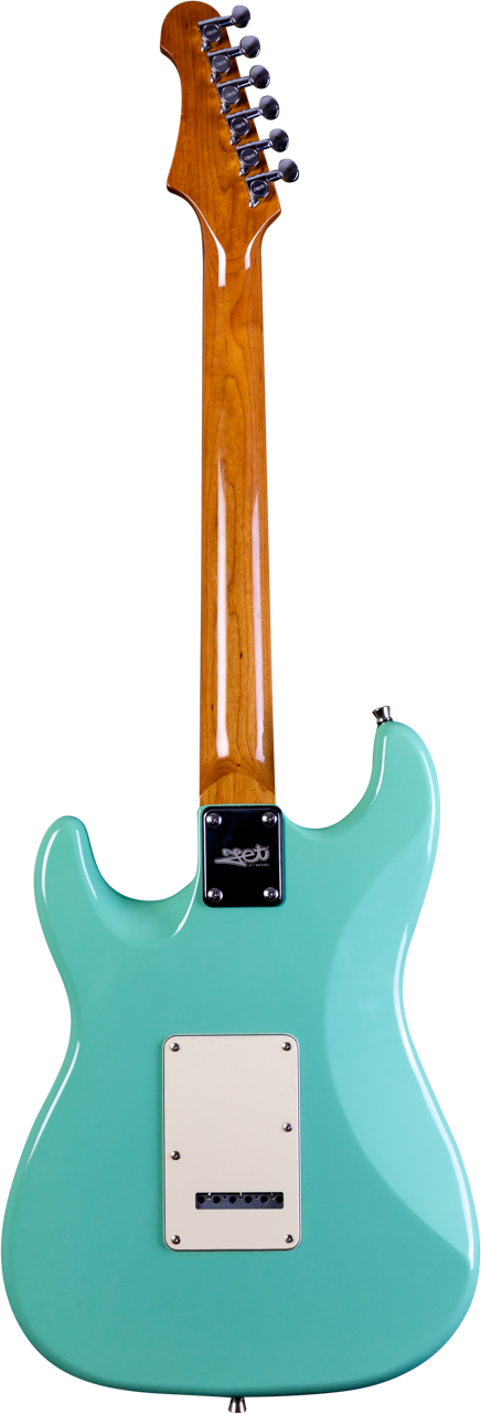 De JS-300 heeft een massief populieren lichaam gecombineerd met een vastgeschroefde Canadese geroosterde esdoorn hals voor stabiliteit en consistentie. De geroosterde esdoorn toets is gebouwd met een vintage-stijl 9.5” radius en uitgerust met 22 frets, wat een vertrouwd platform biedt voor zowel akkoorden als leadspel. De 25.5” mensuurlengte zorgt voor de traditionele snaarspanning en respons die geassocieerd wordt met klassieke S-stijl elektrische gitaren.