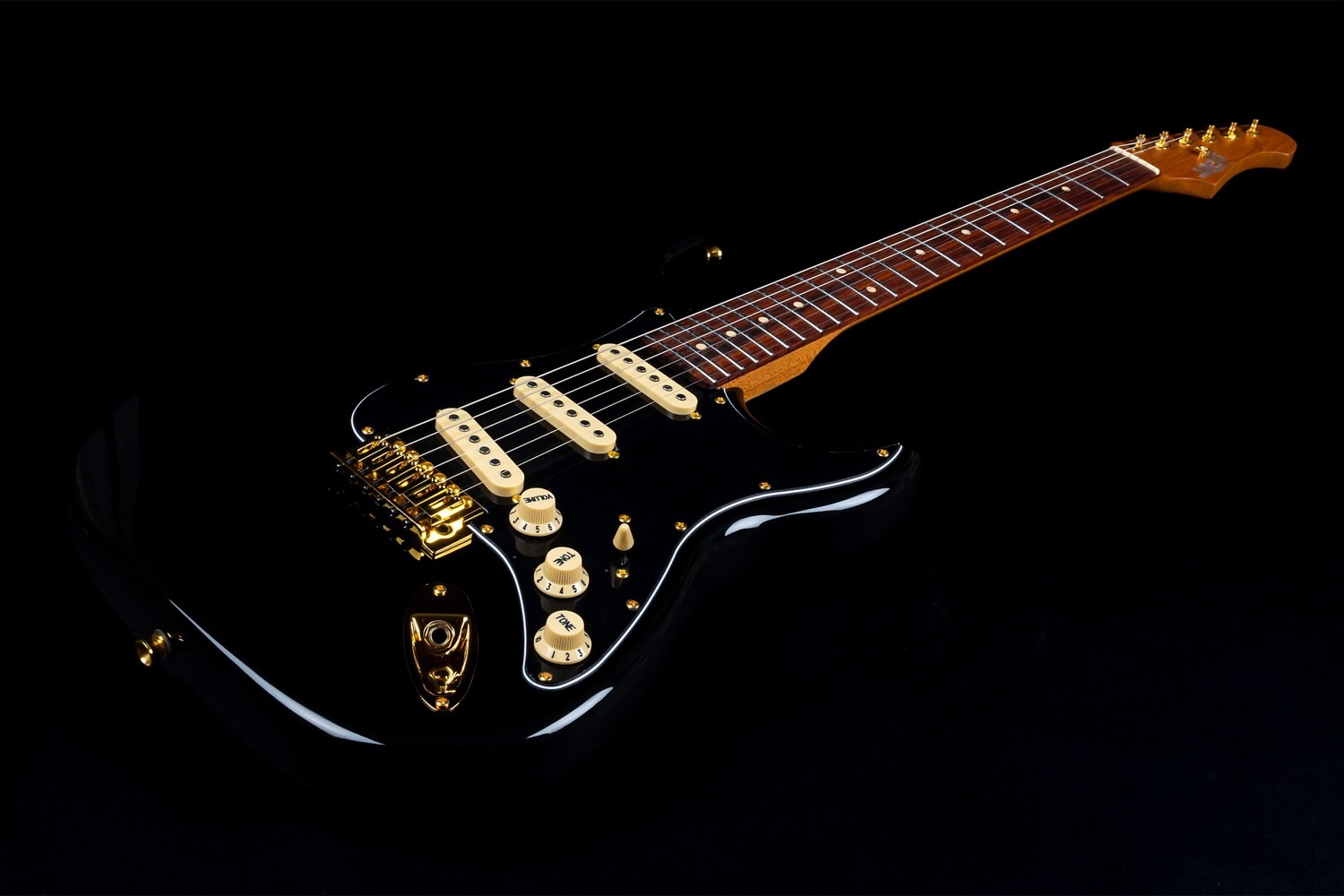 The JS-380 is fitted with upgraded hardware, including locking tuners for improved tuning stability and faster string changes, as well as a redesigned tremolo system engineered for smoother operation and stable return to pitch. Gold hardware completes the specification, adding a refined visual contrast to the classic S-style platform.