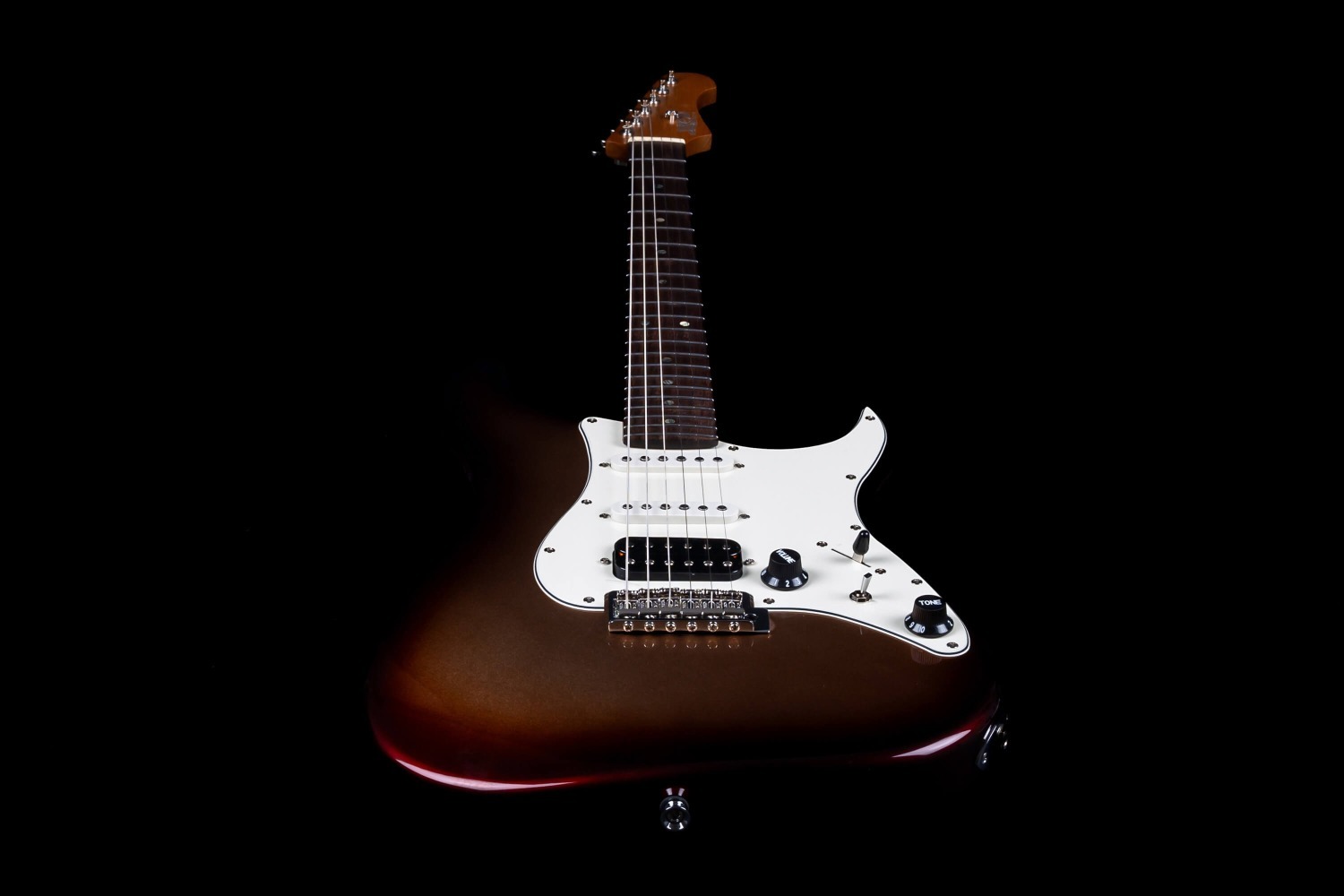 De JS-40 Metallic Burst is uitgerust met een op maat gemaakte Alnico V HSS pickup set, die een brug humbucker combineert met twee single coils voor veelzijdige toonafdekking. De elektronica omvat een 5-weg selector schakelaar, 1 volume- en 1 toonregeling, plus een coil-split functie, wat uitgebreide toonflexibiliteit binnen een traditionele controle-indeling mogelijk maakt.