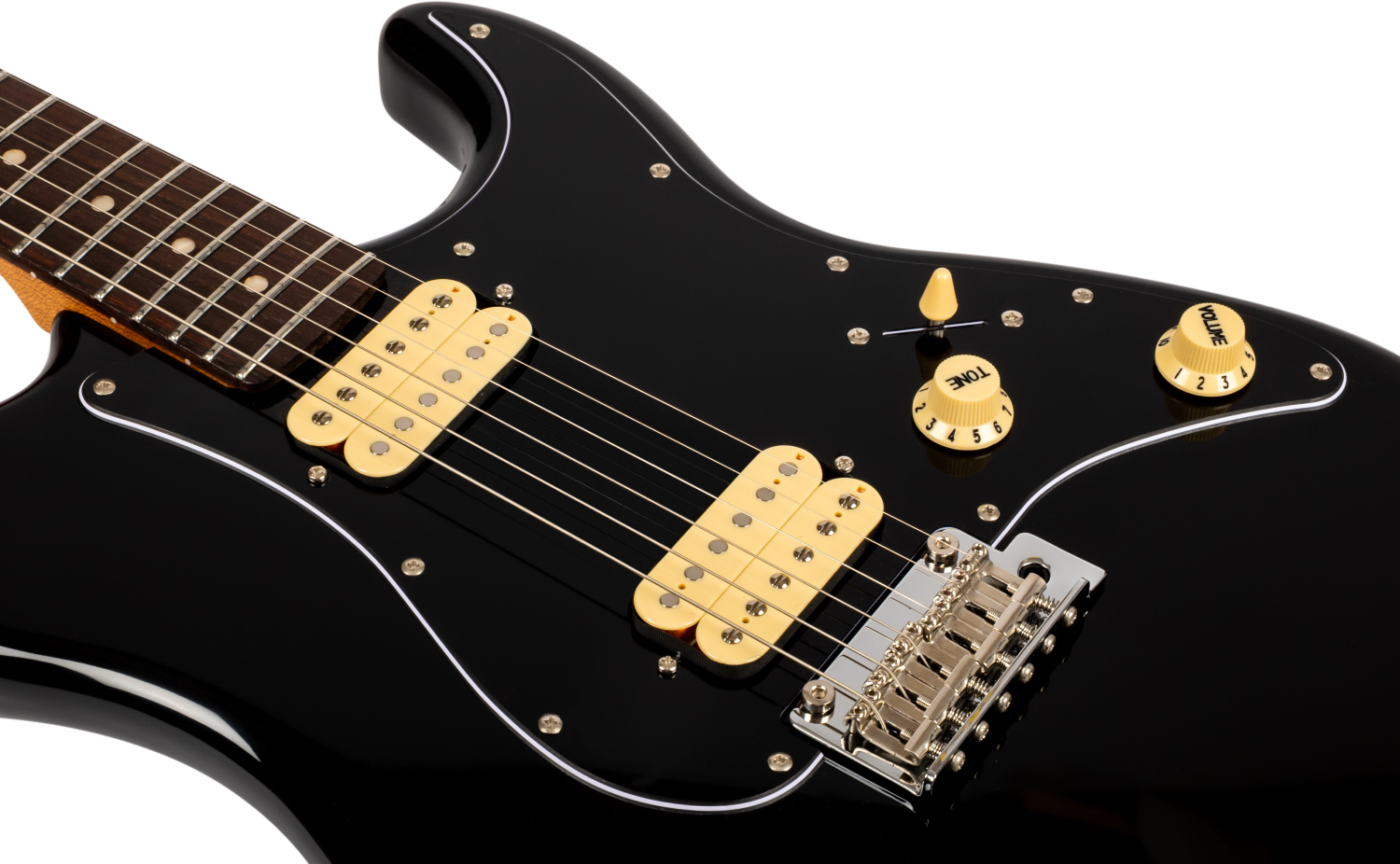 Pickup configuraties omvatten HSS en HH indelingen. HSS versies combineren een brug humbucker met twee single coils, aangeboden in combinaties zoals een zwarte humbucker met witte single coils of gecoördineerde crèmekleurige pickup sets. HH versies zijn beschikbaar met dubbele crèmekleurige humbuckers of dubbele zwarte humbuckers voor een meer hedendaagse uitstraling. Elektronica volgt het vertrouwde S-stijl controleformaat met selectieschakeling en master volume- en toonregelaars.