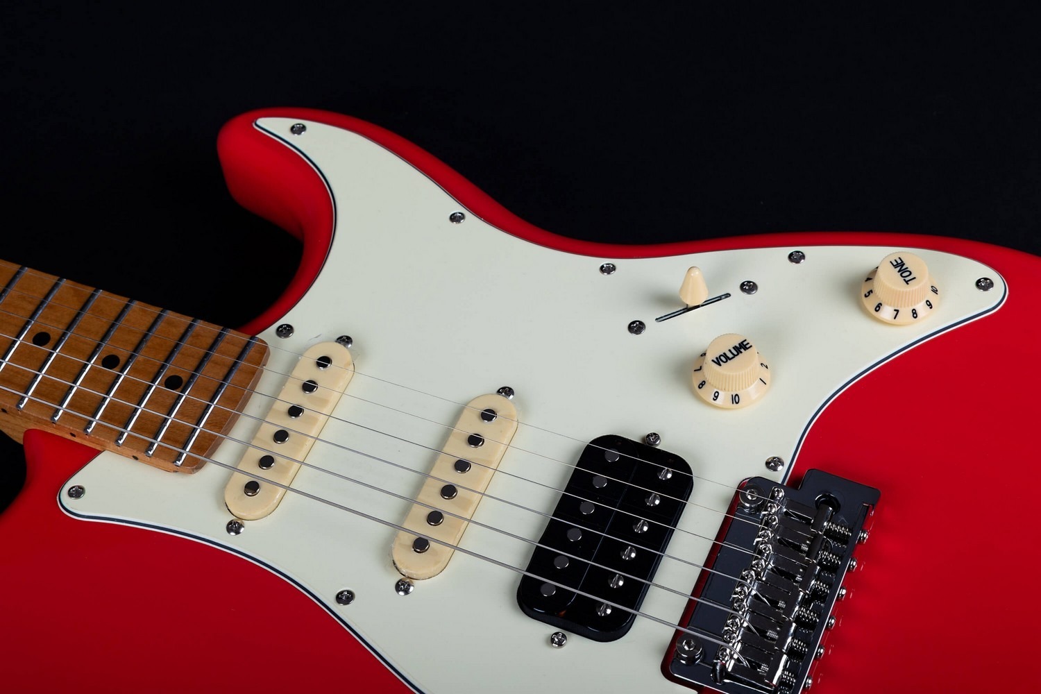 Pickup configuraties omvatten HSS en HH indelingen. HSS versies combineren een brug humbucker met twee single coils, aangeboden in combinaties zoals een zwarte humbucker met witte single coils of gecoördineerde crèmekleurige pickup sets. HH versies zijn beschikbaar met dubbele crèmekleurige humbuckers of dubbele zwarte humbuckers voor een meer hedendaagse uitstraling. Elektronica volgt het vertrouwde S-stijl controleformaat met selectieschakeling en master volume- en toonregelaars.
