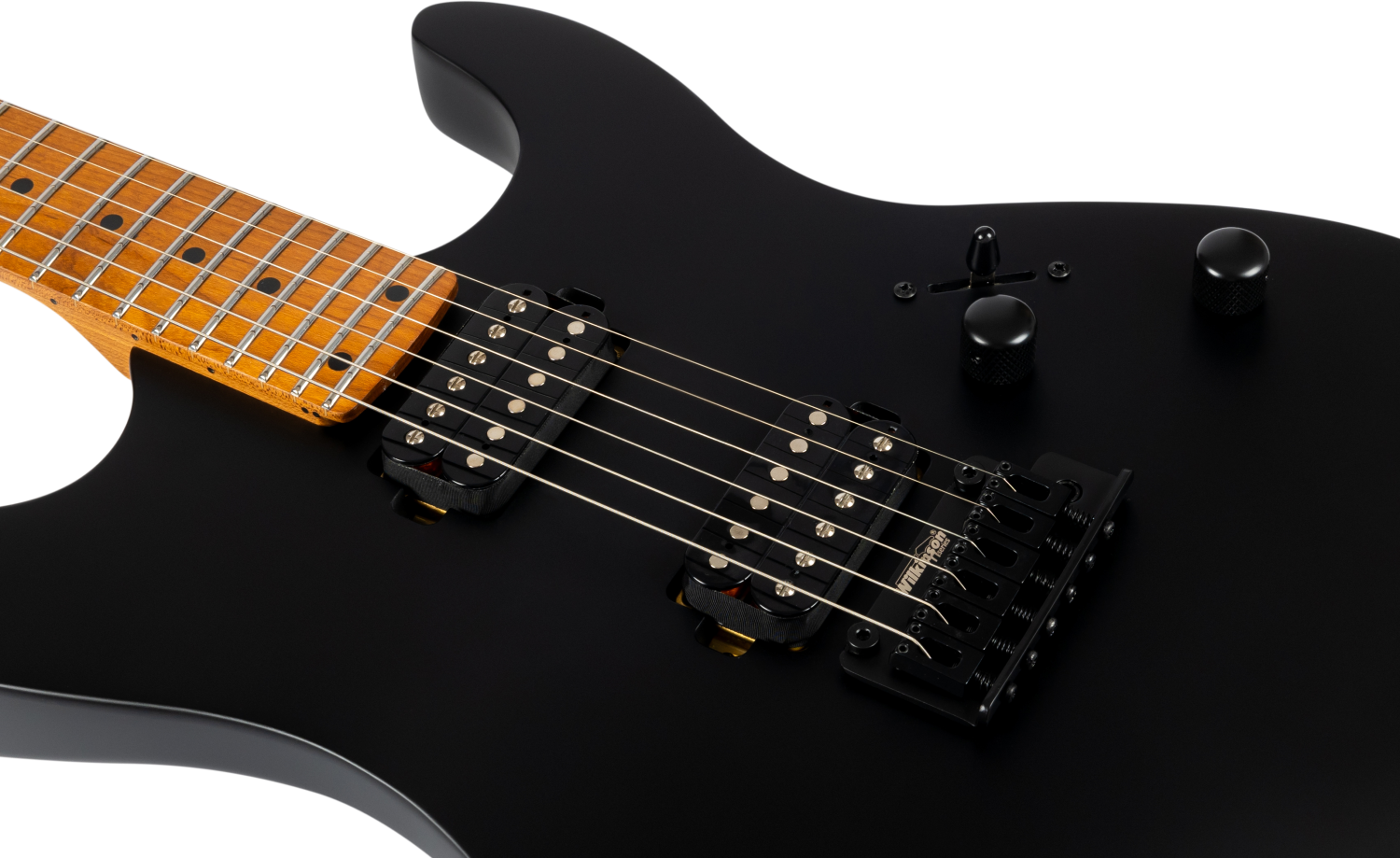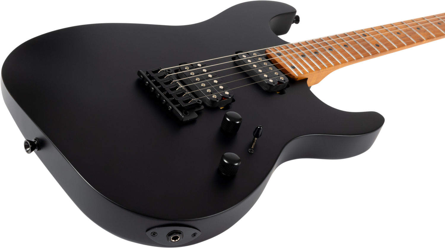 Zwarte hardware zoals de Wilkinson tremolo brug en vergrendelbare stemmechanieken voltooien de specificatie, en bieden stabiele stemming en soepele werking in een moderne S-stijl gebouwd voor hogere gain toepassingen.