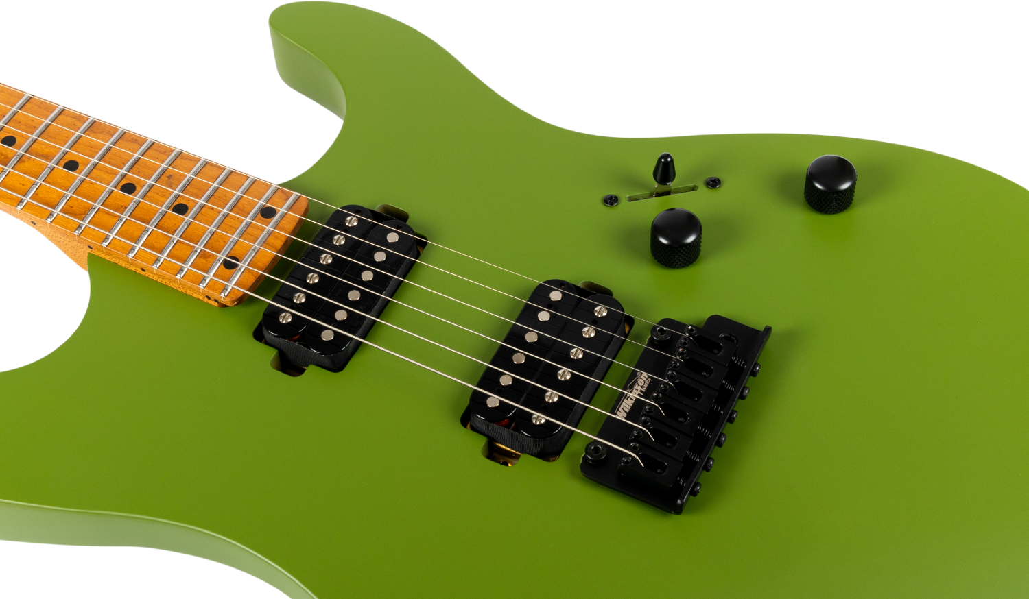 Zwarte hardware zoals de Wilkinson tremolo brug en vergrendelbare stemmechanieken voltooien de specificatie, en bieden stabiele stemming en soepele werking in een moderne S-stijl gebouwd voor hogere gain toepassingen.