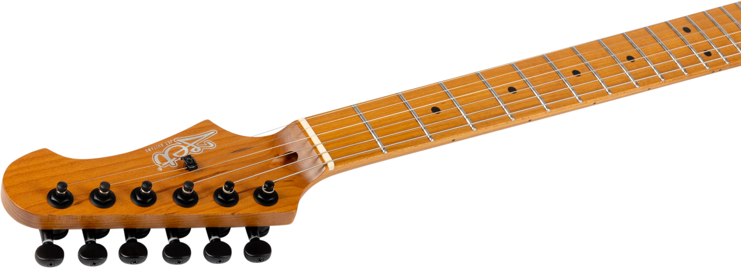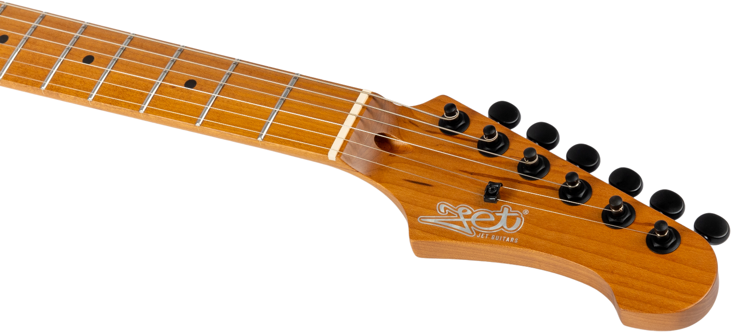 Voorzien van een twee-punts tremolo systeem en verzegelde stemmechanieken, behoudt de JS-600 stabiele stemming en soepele werking. Ontworpen in Europa en geconstrueerd met zorgvuldig geselecteerde toonhouten, levert de JET JS-600 Serie een premium S-stijl platform gedefinieerd door mahonie en esdoorn constructie met veelzijdige HSS elektronica.