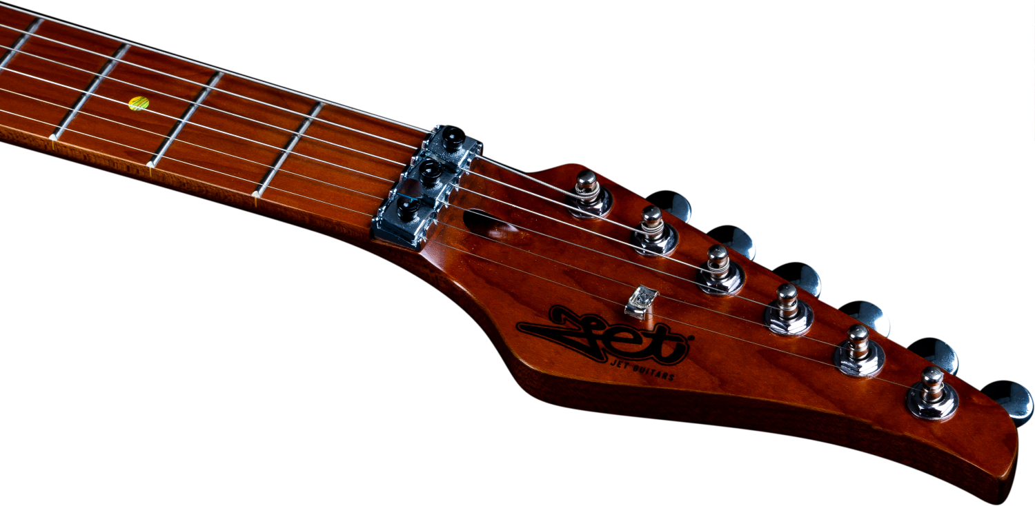 De JET JS-850 RLC FR breidt de 800 Serie uit met een gedurfde rode verouderde afwerking en een verbeterd tremolosysteem. Deze uitvoering combineert verouderde esthetiek met prestatiegerichte hardware, en is gebouwd voor expressief en energiek spel.