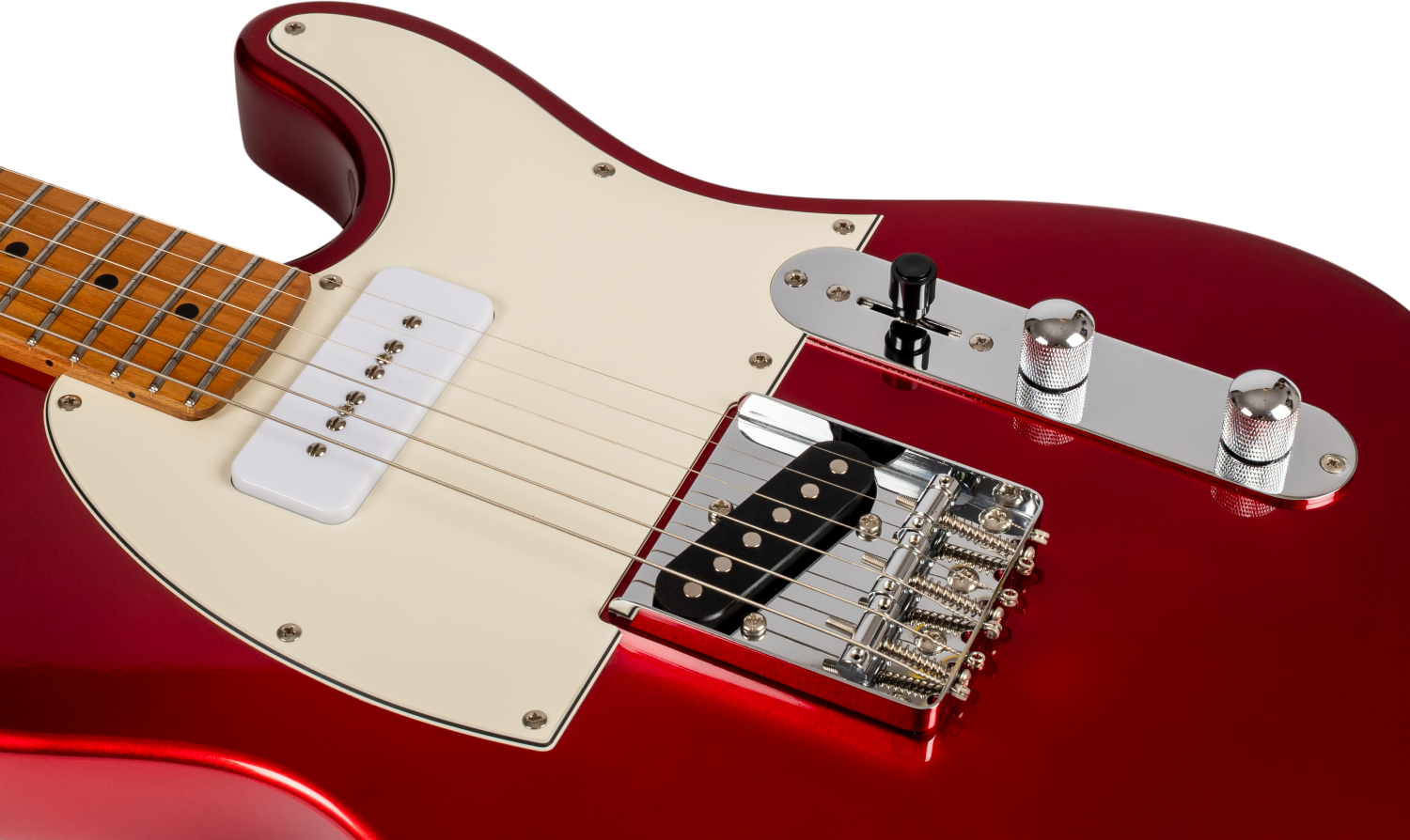 De JT-300 heeft een solide populieren body in combinatie met een bolt-on Canadese geroosterde esdoorn hals voor stabiliteit en consistentie. De geroosterde esdoorn toets is gebouwd met een vintage-stijl 9.5” radius en uitgerust met 22 frets, wat een vertrouwd en gebalanceerd speeloppervlak biedt. De 25.5” mensuurlengte zorgt voor de traditionele snaarspanning en snap die geassocieerd worden met klassieke T-stijl elektrische gitaren.