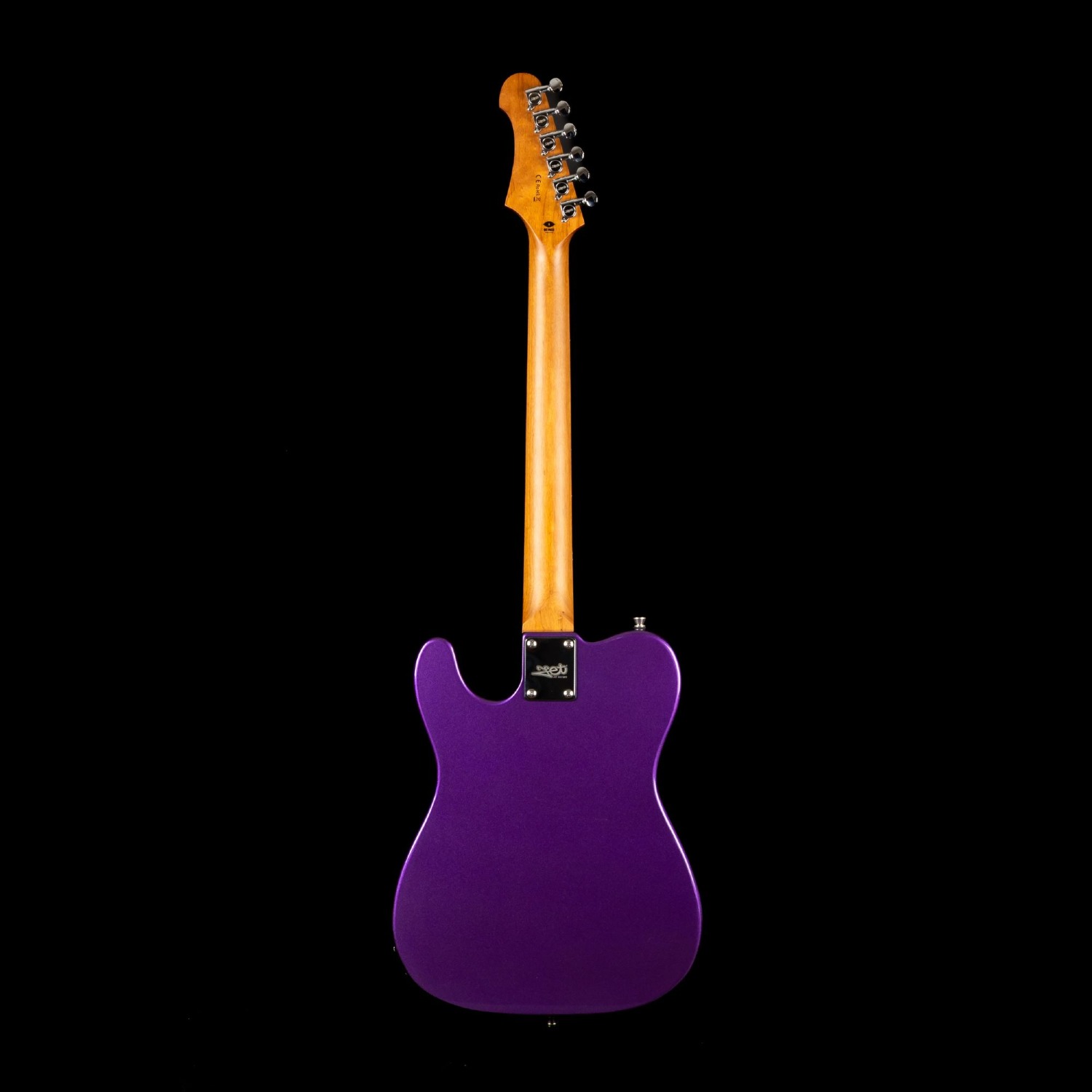 The SS pickup configuration consists of two single-coil pickups and a 3-way selector switch, offering classic T-style tonal options. The control layout includes master volume and tone controls for straightforward tonal adjustment.