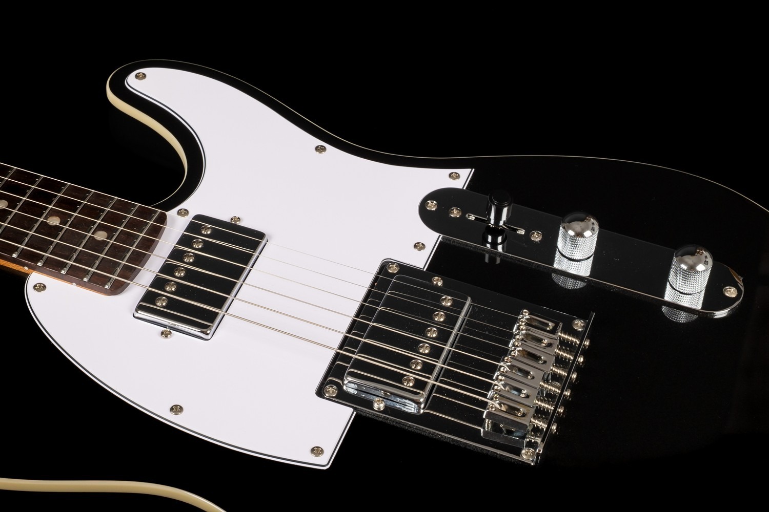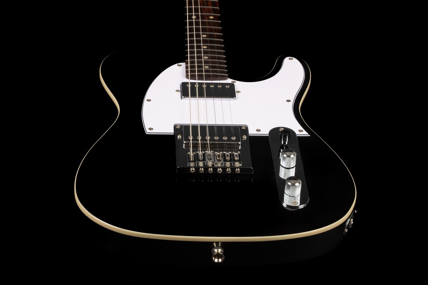 The HH configuration features two humbuckers controlled via a 3-way selector switch. This setup provides bridge, neck, and combined pickup positions, supported by master volume and tone controls for straightforward sound adjustment. The dual humbucker layout delivers increased output and a broader frequency range compared to traditional single-coil configurations.