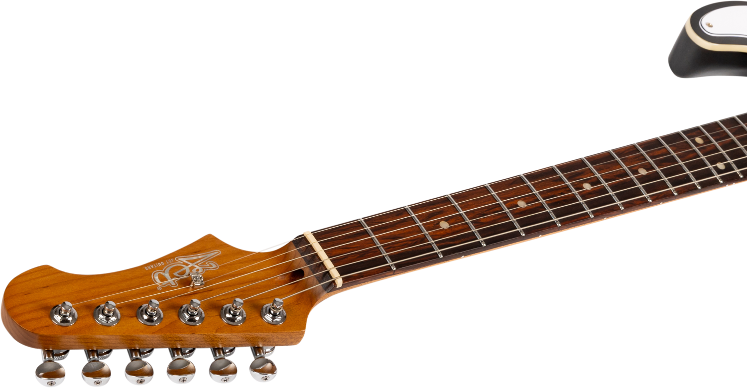 Gebouwd met een solide populieren body en een gelijmde Canadese geroosterde esdoorn hals, biedt de JJ-350 een stabiel en gebalanceerd platform. De 25.5” schaal lengte zorgt voor een vertrouwde snaarspanning en respons, terwijl de vintage-stijl 9.5” radius en 22-fret indeling een comfortabele en veelzijdige speeloppervlakte bieden. Dit model is beschikbaar met een esdoorn of palissander toets, waardoor spelers kunnen kiezen tussen twee klassieke visuele en tactiele opties.