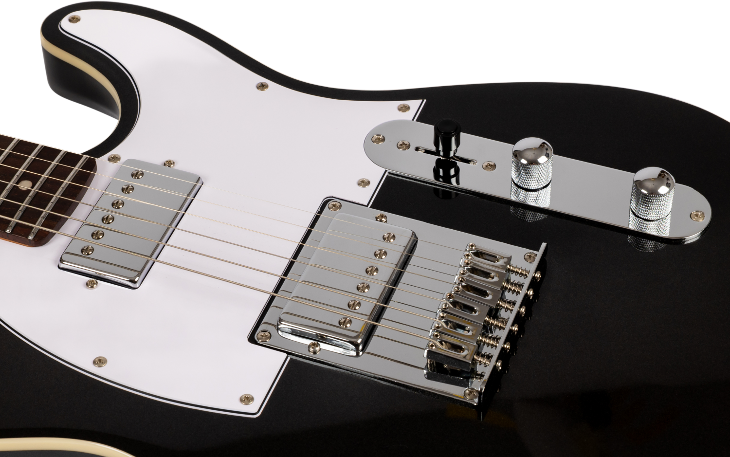 De HH-configuratie heeft twee humbuckers die worden bediend via een 3-weg selectieschakelaar. Deze opstelling biedt brug-, hals- en gecombineerde pickupposities, ondersteund door master volume- en toonregelaars voor eenvoudige geluidsaanpassing. De dubbele humbucker indeling levert een verhoogde output en een breder frequentiebereik in vergelijking met traditionele single-coil configuraties.