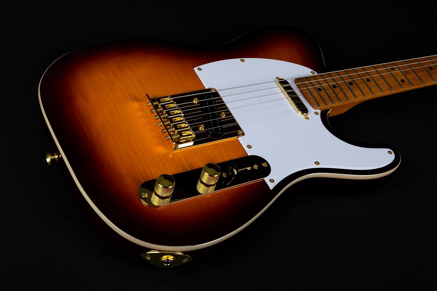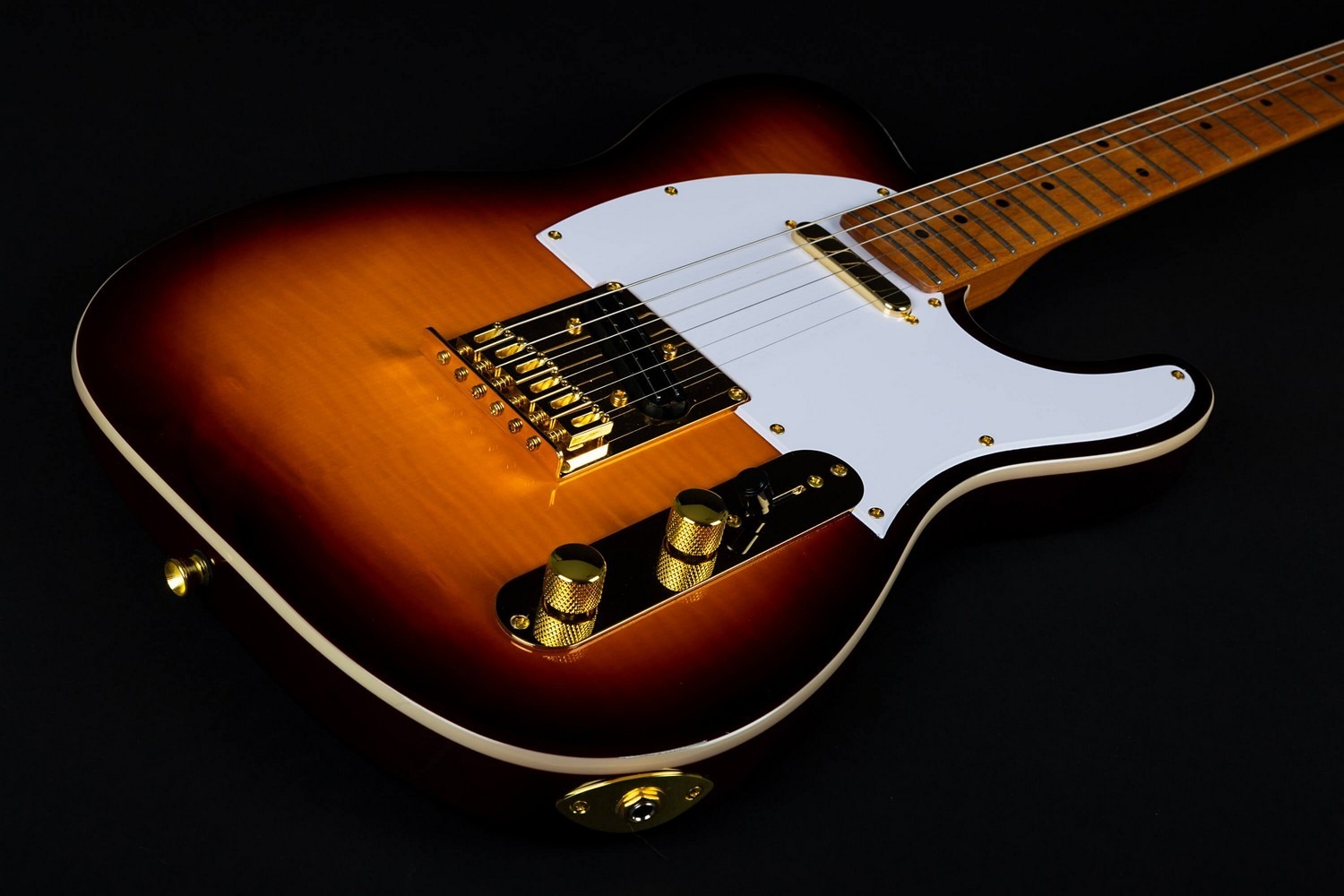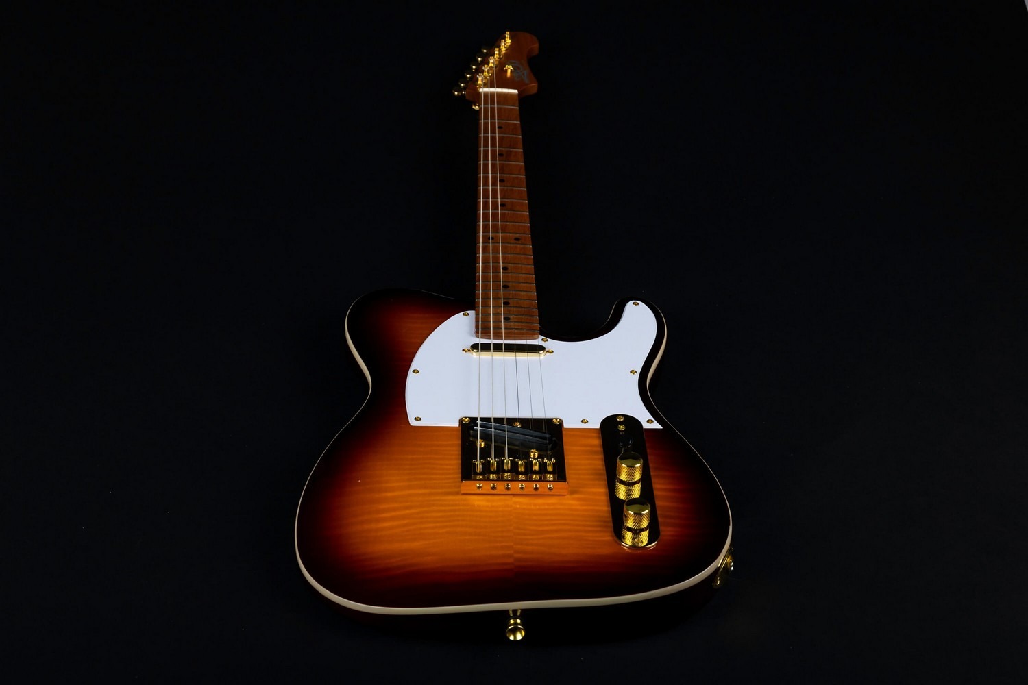 Gebouwd met een geschroefde esdoorn hals en een 25.5” schaal lengte, volgt de gitaar de klassieke T-stijl specificaties met een 22-fret esdoorn toets en vintage-stijl 9.5” radius. De esdoorn toets complementeert de gevlamde esdoorn top terwijl het de vertrouwde snappy en articulatie behoudt die geassocieerd wordt met dit platform.
