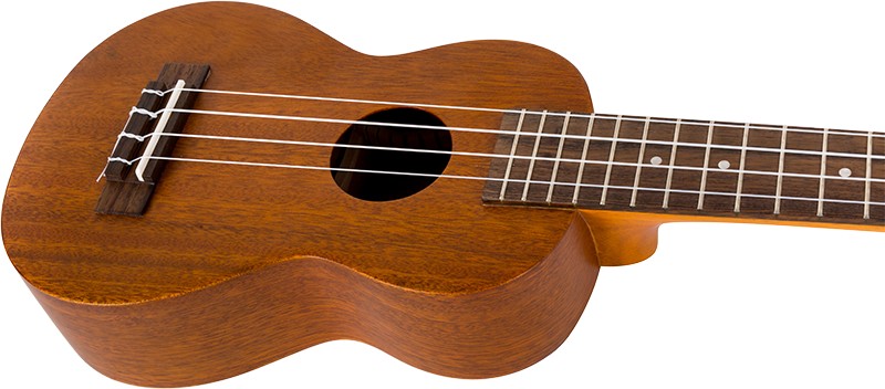 Concert scale soprano ukuleles are rare, but we would like them to become more recognized – they are a perfect combination of both worlds by merging the qualities of a soprano ukulele with the increased comfort of a concert neck.   This vintage-styled ukulele packs a punch with its solid mahogany construction, thin and resonant sound board, and quality geared tuners.