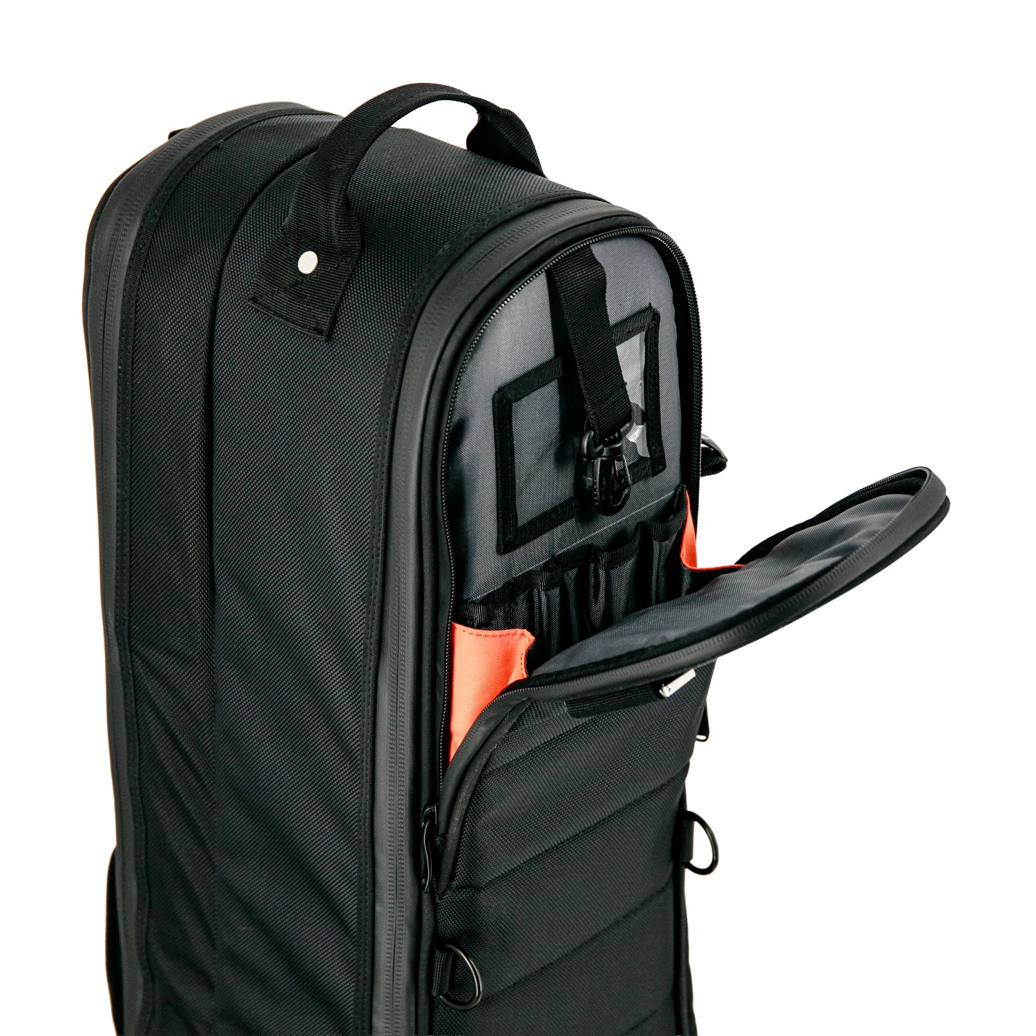 De case is ontworpen met toermuzikanten in gedachten. Een grote uitbreidbare vooropslagzak biedt voldoende ruimte voor kabels, pedalen en accessoires, terwijl interne compartimenten essentiële tools georganiseerd en gemakkelijk toegankelijk houden. De case is ook volledig Tick-ready, waardoor extra opslag mogelijk is door MONO Tick 2.0 of Tick+ 2.0 accessoirecases te bevestigen wanneer je extra gear meeneemt.