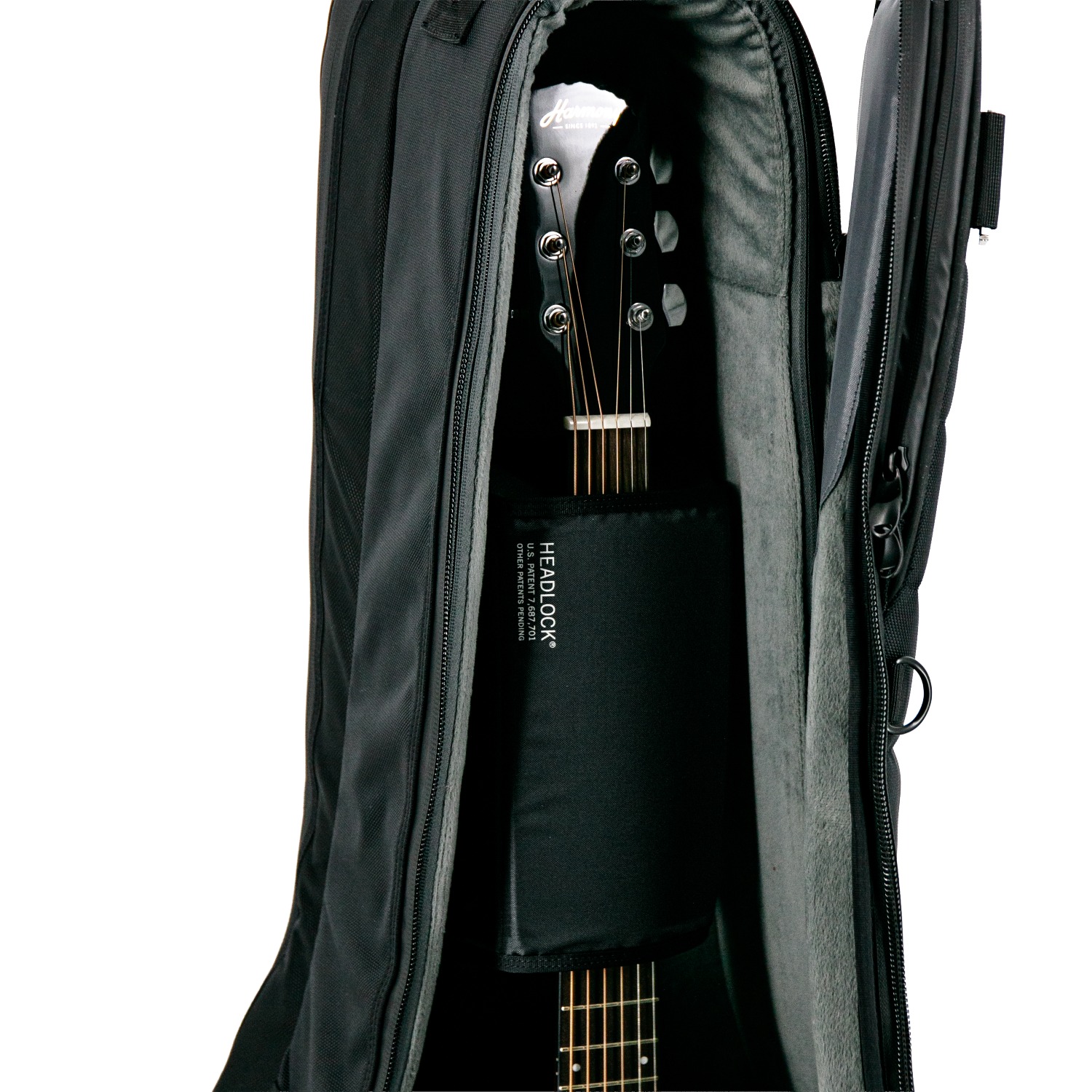 Binnenin wordt elk instrument opgeslagen in zijn eigen speciale compartiment. MONO’s verbeterde Headlock® suspensiesysteem ondersteunt de gitaarhalzen veilig en houdt beide instrumenten gescheiden tijdens transport. De zachte binnenvoering biedt extra bescherming, terwijl een discreet trackerzakje je in staat stelt om een AirTag of een vergelijkbaar trackingapparaat in de case te plaatsen voor extra beveiliging tijdens het reizen.
