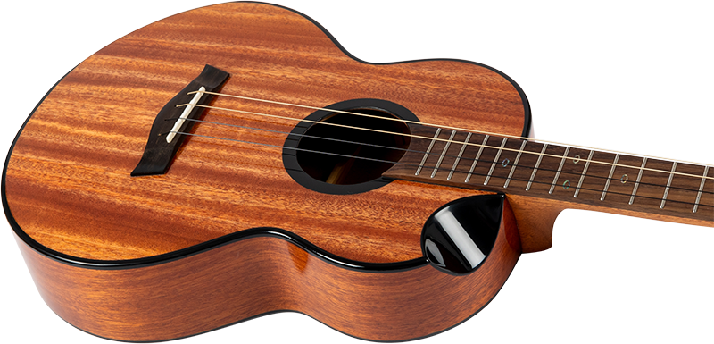 Likely overdue in our catalog, Flight introduces the Nomad, a solid mahogany ukulele in the styling of other models in the Royal Series–but with twist–the Nomad is offered first in the baritone scale!  Mahogany is a favorite wood in the world of ukulele, creating a warm, mellow tone that is ideal for many different genres of music.   However, this isn’t your classic “antique” mahogany ukulele, with its striking looks and its black binding and black cutaway.  And while there are alternative tunings for baritone ukuleles, we ship our ukuleles with standard linear DGBE tuning.  Looking for an excellent, well rounded baritone?  If so, don’t wander any further in your search–the Flight Nomad is the instrument for you.